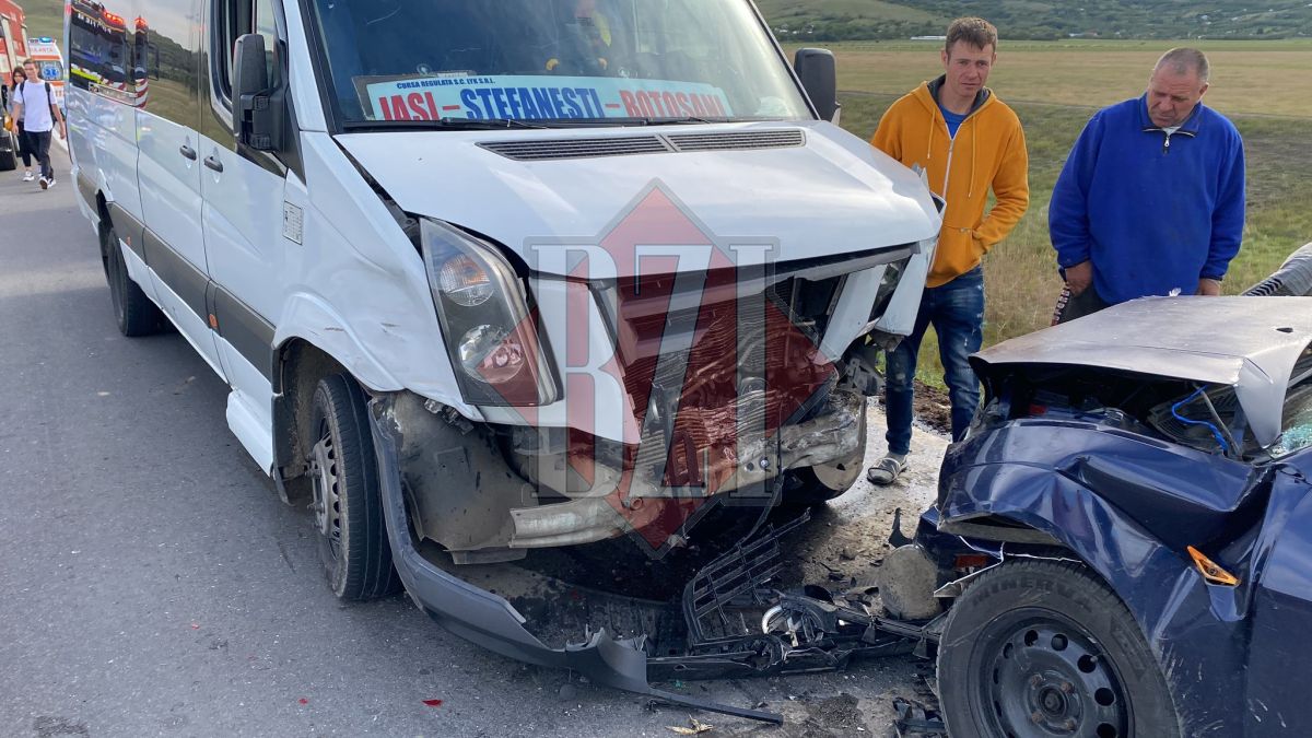 Un microbuz din Botoșani, în care se aflau 20 de persoane, a fost implicat într-un accident rutier. Microbuzul a intrat în coliziune cu un autoturism, luni, pe DN 24 C, în judeţul Iaşi, cinci persoane fiind rănite.