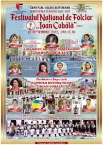 Orchestra Populară ,,Rapsozii Botoșanilor” Ioan Cobâlă, instituție aflată în subordinea Consililui Județean Botoșani, va deschide stagiunea 2022- 2023 cu organizarea în perioada 29 – 30 septembrie 2022 a Festivalului Național de Folclor ,,Ioan Cobâlă”- ediția I.