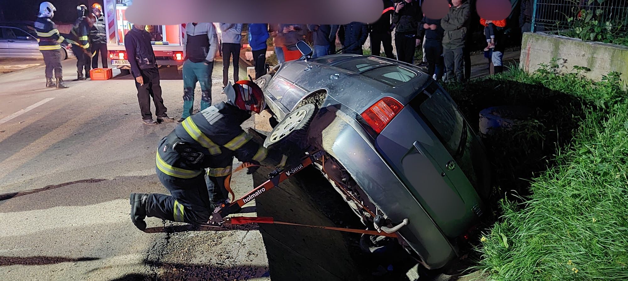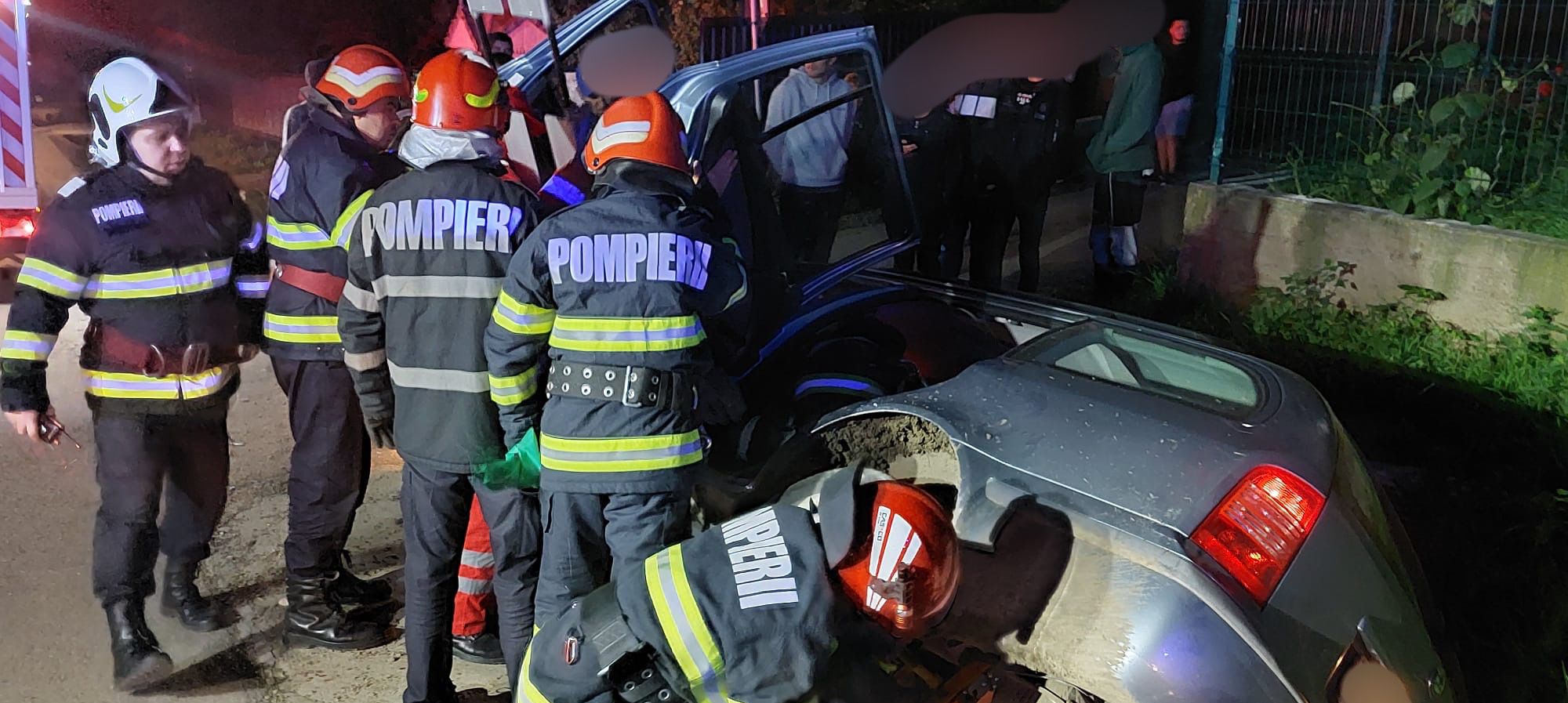 La sosirea echipajelor de intervenție la locul evenimentului, a fost găsit un autoturism care a lovit un cap de pod, iar mai apoi s-a răsturnat pe o parte în șanț. În interior se aflau două victime rănite. Una dintre ele a rămas blocată în autoturism, iar pompierii au procedat la scoaterea și predarea acesteia către echipajele medicale aflate la fața locului. Șoferul și pasagerul din autoturism au fost preluați si transportați la Unitatea de Primiri Urgențe Botoșani pentru evaluare de specialitate.
