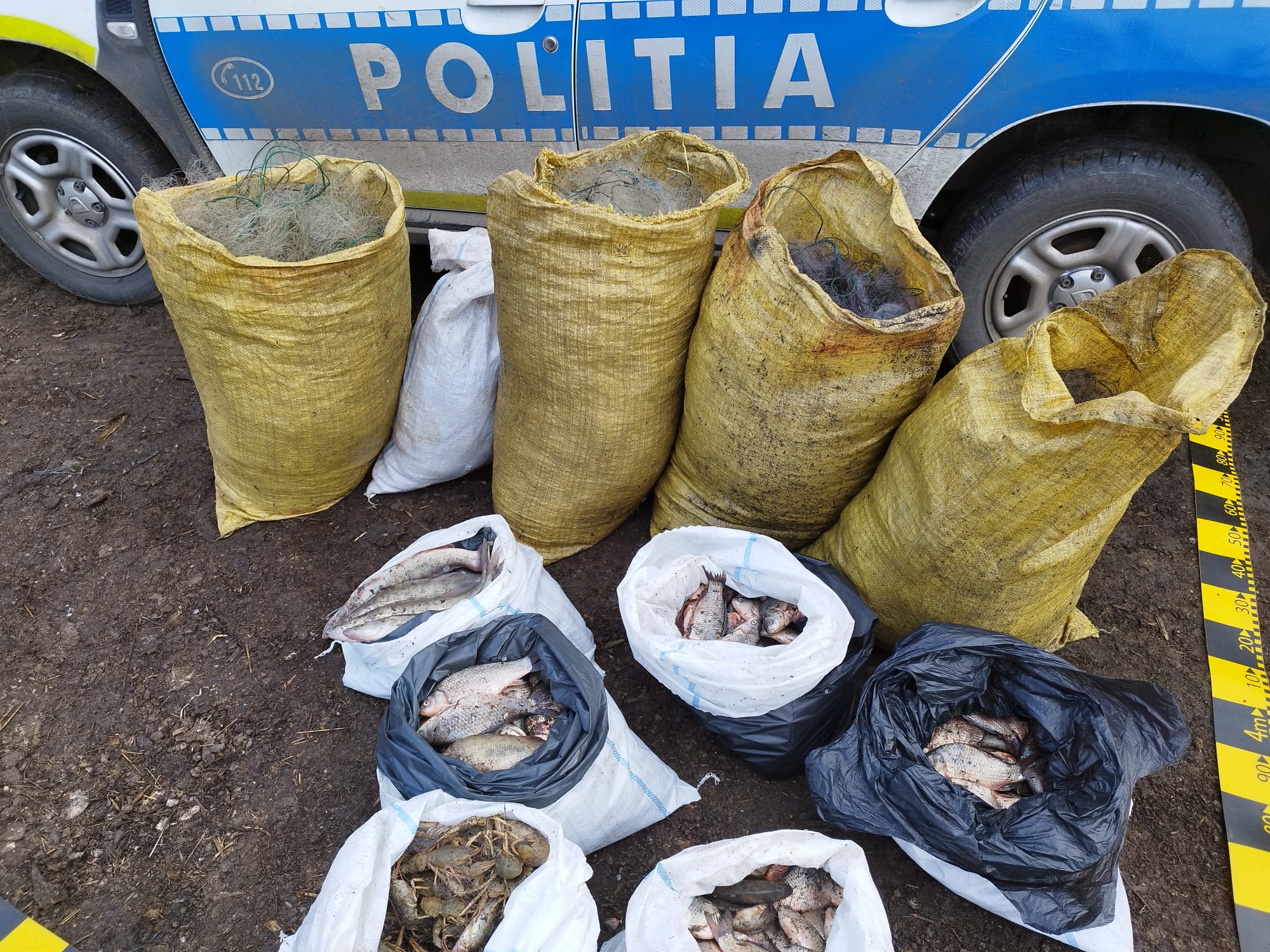 ”În urma perchezițiilor domiciliare efectuate au fost identificate și ridicate în scopul cercetărilor un număr de 8 plase monofilament pentru pescuit, 42,50 kg pește din specia caras, 9 kg pește din specia șalău și 6,30 kg raci, întreaga cantitatea de pește/crustacee fiind sustrasă în noaptea de 28-29 septembrie 2022 din iazul Negreni, comuna Știubieni”, a declarat Delia Nenișcu, purtătorul de cuvânt al Inspectoratului de Poliție Județean.