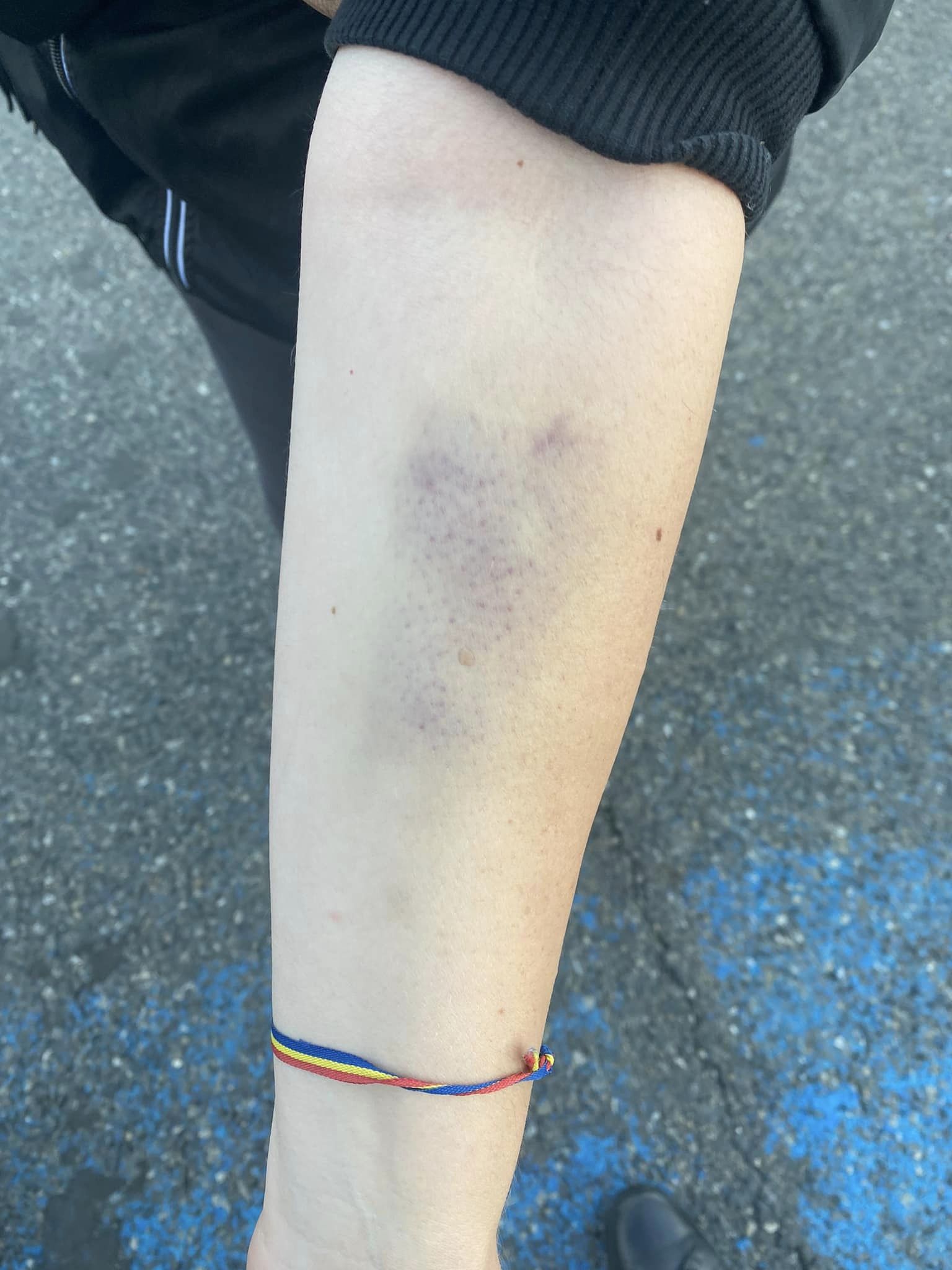 „Aici aveți o tentativa de a mea de a ajunge la colega mea Ariadna Cîrligeanu care era târâtă pe jos. Nu am mai apucat. Îmi pare rău ca nu v-am mai ținut la curent! Ne-au ridicat și autocarul, ne-au bătut și ne au amendat. Mi-au dat 7500 lei amenda, 2500 pentru ca ”nu m-am legitimat””, precizează o altă tânără participantă la protest.