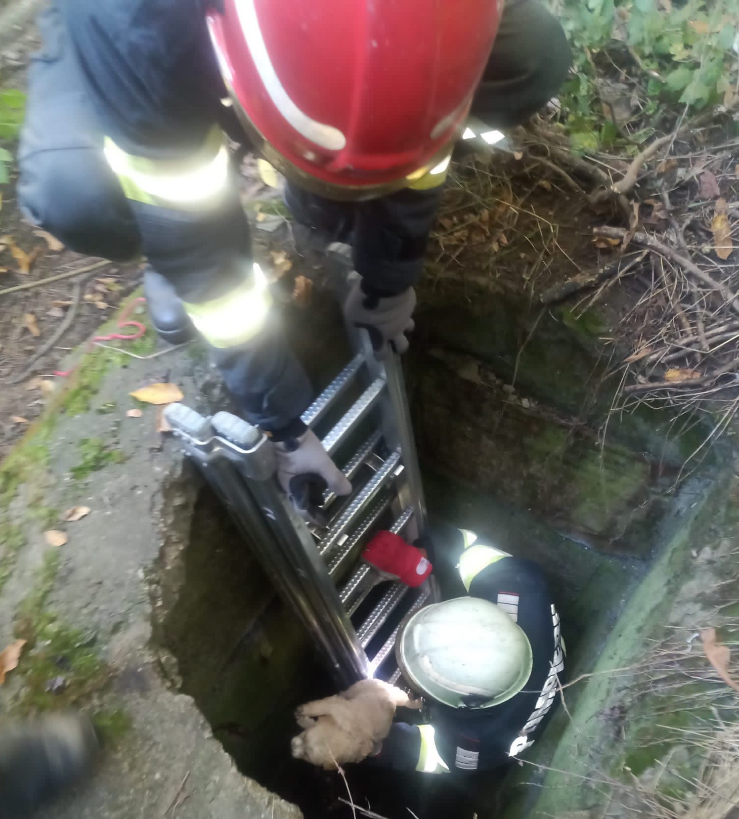 Animăluțul se afla la o adâncime de aproximativ patru metri, iar pompierii salvatori au coborât în interior și l-au scos la suprafață nevătămat. Puiul de cățel era deshidratat și a fost preluat în îngrijire de angajatii societății comerciale.