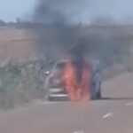 Un autoturism a luat foc în timp ce se deplasa pe raza localității Ibănești, joi după-amiază. Conducătoarea auto a simțit miros de fum, a oprit și a sunat la 112.