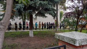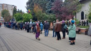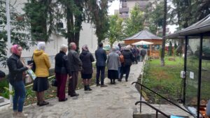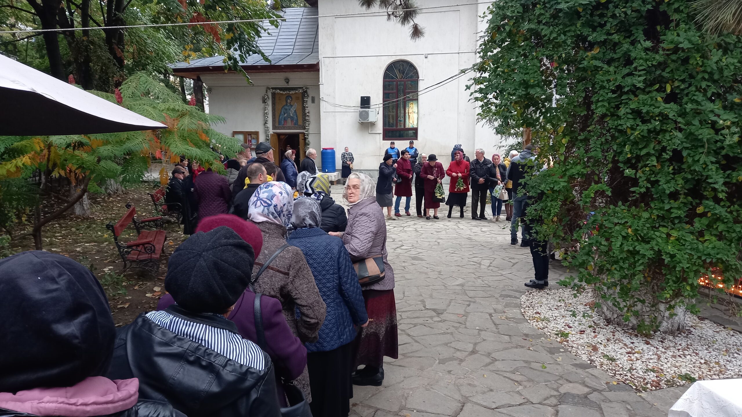 Oamenii au fost nevoiti sa astepte la rand pentru a se inchina, coada formându-se până după Cinema Unirea. După slujbă, credincioșii vor primi sarmale din partea parohiei.
