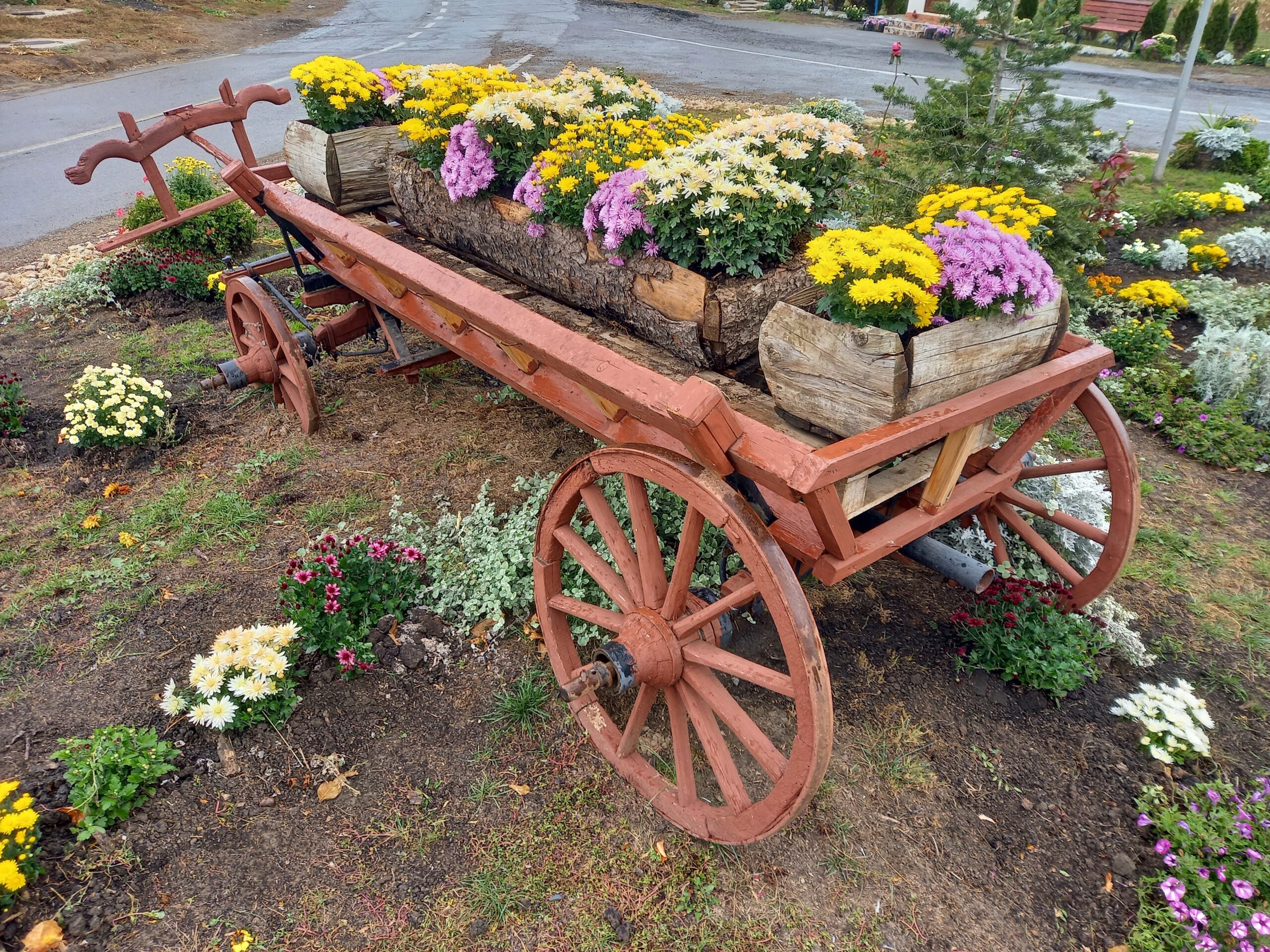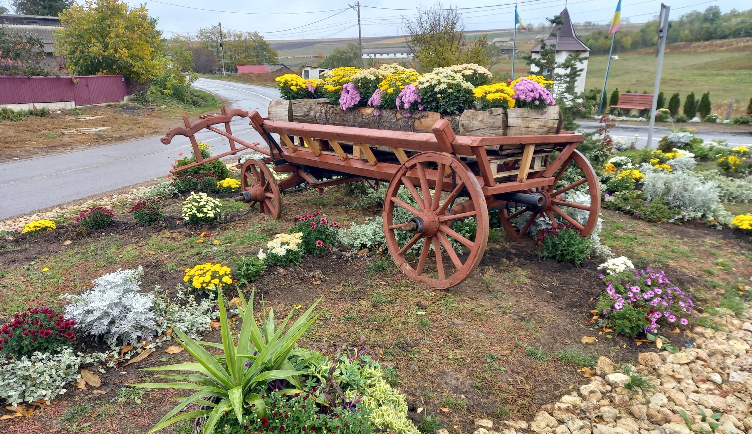 Un aranjament similar, care are în centrul său căruța cu flori, poate fi găsit și la Primăria Manoleasa. De asemenea, astfel de decorațiuni pot fi găsite în multe zone publice din județul Suceava, printre care și o benzinărie Petrom.