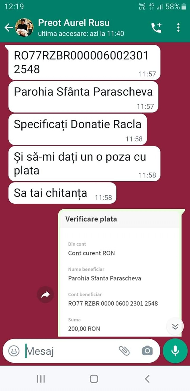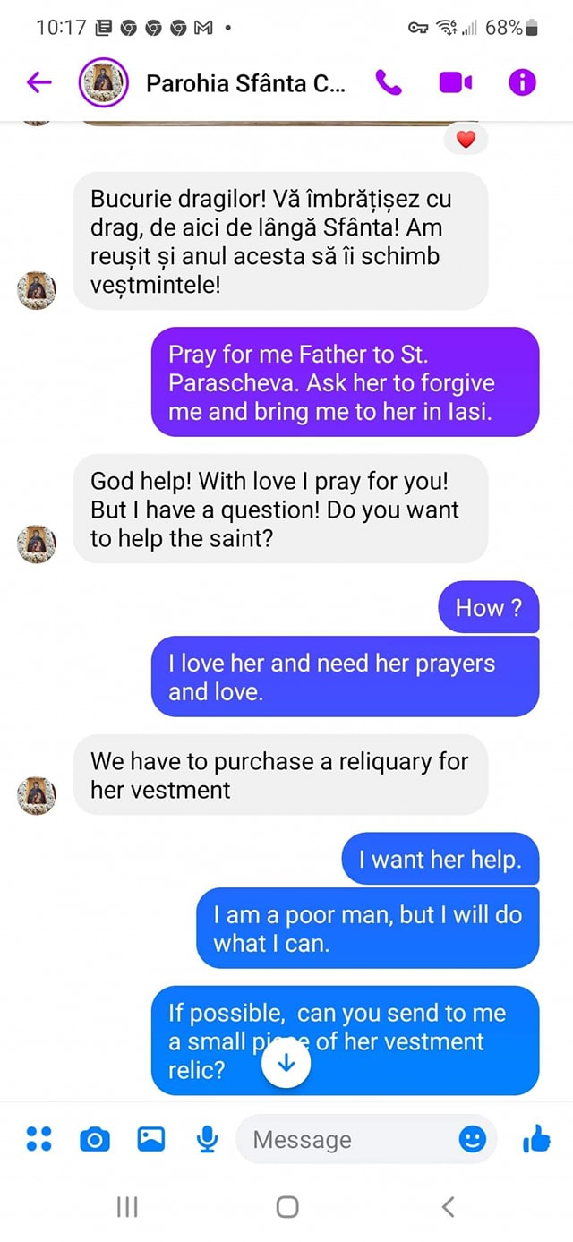 „Vreau să atrag atenția asupra unui aspect extrem de neplăcut cu care ne-am confruntat recent! În ultima vreme, tot primesc mesaje prin care imaginea mea, a soțului și a familiei nostre este preluată de cineva sau de mai mulți care folosesc conturi false și prin care cer sume de bani, fie în numele Parohiei Sfânta Cuvioasă Parascheva, fie a unui preot, etc. Vrem să lămurim că nu avem de a face cu aceste pagini/conturi. Nu solicităm bani pentru nimic și vă indemnăm să raportați aceste conturi. Această practică este furt de identitate și se pedepsește legal. Cei băgubiți pot depune sesizare la poliție! Pe cât e de frumos internetul, pe atât unii îl folosesc de abominabil. Să nu cădeți în plasa șarlatanilor! Verificați sursele!”, susține Iustina Irimia.