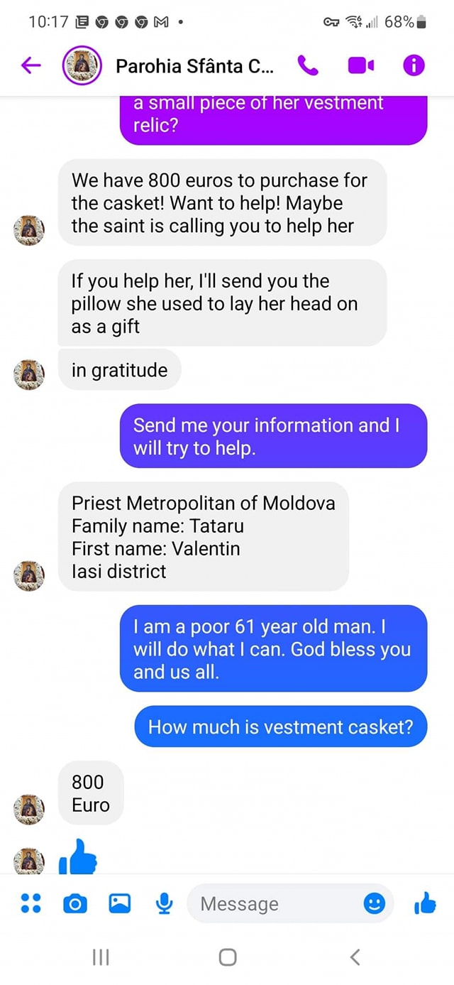 Imaginile preotului militar din Botoșani, Teodor Cenușă, și a soției acestuia, Iustina Irimia, ba chiar a fetiței celor doi, au fost folosite pe diverse conturi false prin care se solicită bani. Artista Iustina Irimia a transmis un mesaj public prin care anunță că familia ei nu are nicio legătură cu ce se vehiculează pe internet.