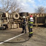 Pompierii sunt încă la fața locului. Au asigurat măsurile de prevenire a incendiilor și acționează pentru sablarea părții carosabile, fiind scurgeri de carburant.