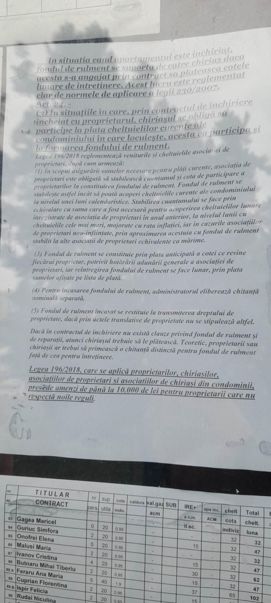 „Suntem la zi cu plata asociației, dar nu vor să dea drumul la centrală până nu se strânge fondul de rulment”, ne-a mărturisit o locatară.