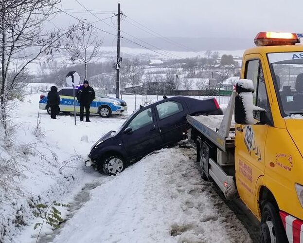Încă un accident rutier a avut loc luni pe fondul zăpezii. Doi soți au fost răniți după ce mașina în care se aflau a intrat într-un cap de pod. Accidentul s-a produs pe raza localității Cerbu, pe drumul care face legătura între Copălău și Dracșani.