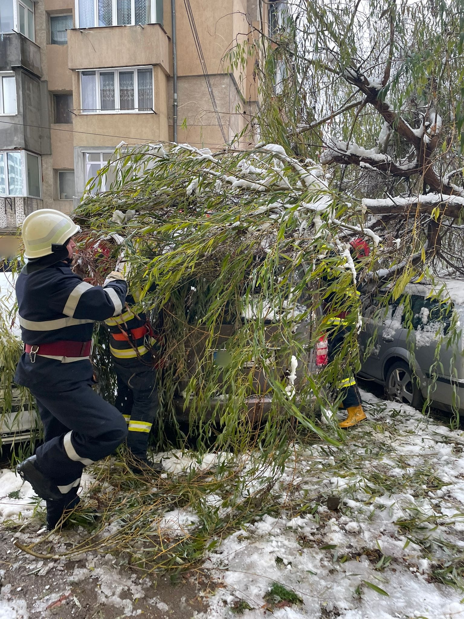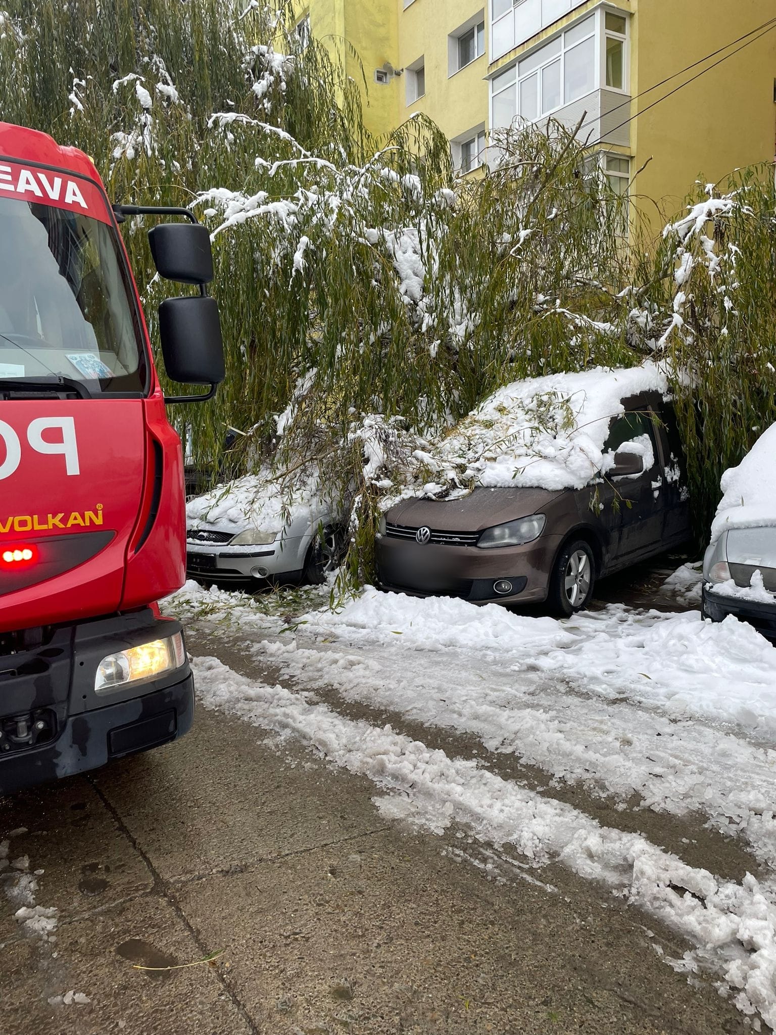 Un copac s-a prăbușit peste trei mașini marți dimineață. Incidentul a avut loc în municipiul Suceava (zona Metro).