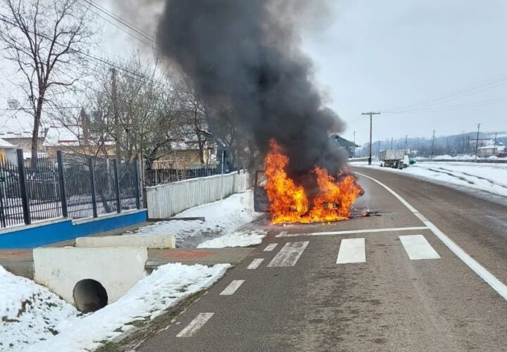 FOTO O mașină a luat foc în mers, într-o comună din Botoșani. Șoferița a sunat la 112