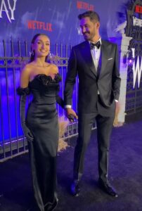 „Atât de fericiți să pășim pe covorul negru din Los Angeles la premiera serialului WEDNESDAY! De astăzi îl puteți urmări pe @george_burcea în rolul lui Lurch pe Netflix!”, a scris Viviana Sposub, pe o platformă de social media.