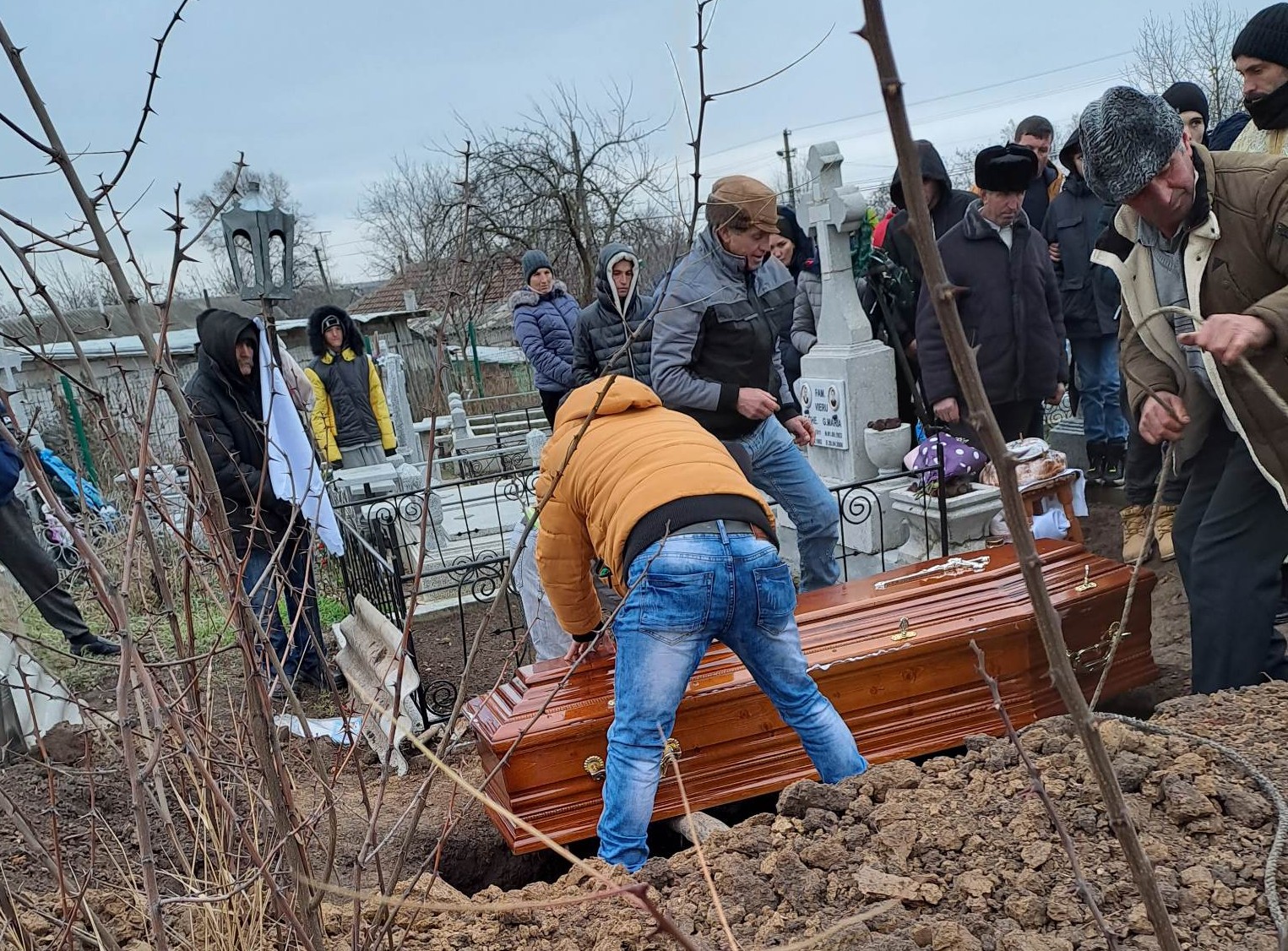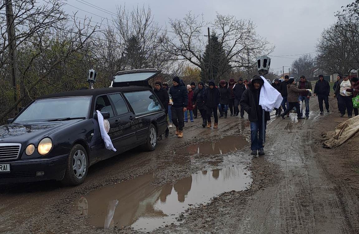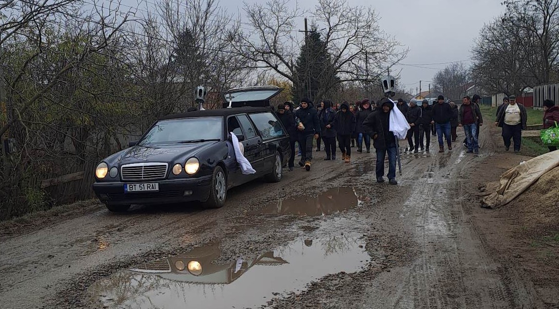 FOTO Durere de nedescris! Doi copii din Botoșani și-au condus, astăzi, mama pe ultimul drum. Plecase în Italia pentru a munci, dar s-a întors în sicriu