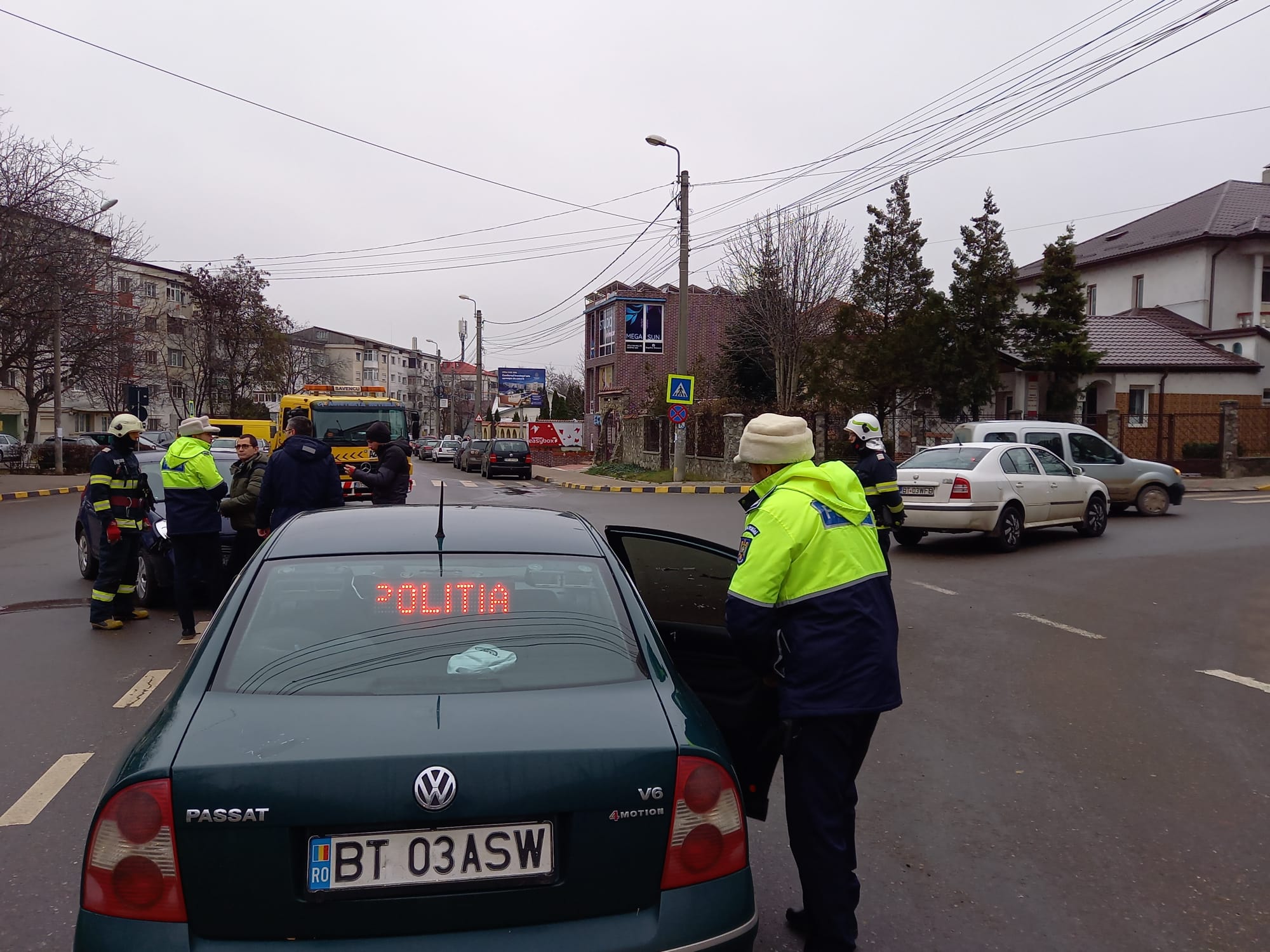 În evenimentul rutier au fost implicate o Skoda Octavia, care aparţine Case Judeţene de Asigurări de Sănătate, şi o Dacia Sandero. Autoturismul Skoda, care circula pe Mihail Kogălniceanu, nu a acordat prioritate de trecere autoturismului Dacia, care circula regulamentar.