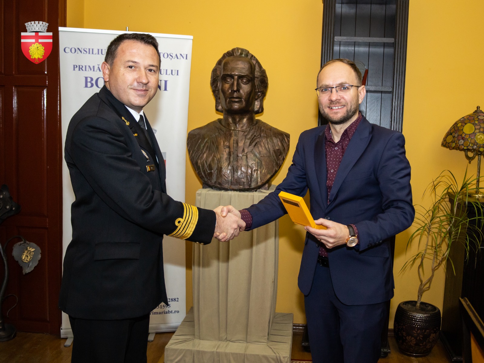Edilul botoșănean și-a manifestat aprecierea pentru distincția primită, reiterând sprijinul său în acțiunile de promovare și parteneriate cu Forțele Navale Române, informează printr-un comunicat Primăria Botoșani.