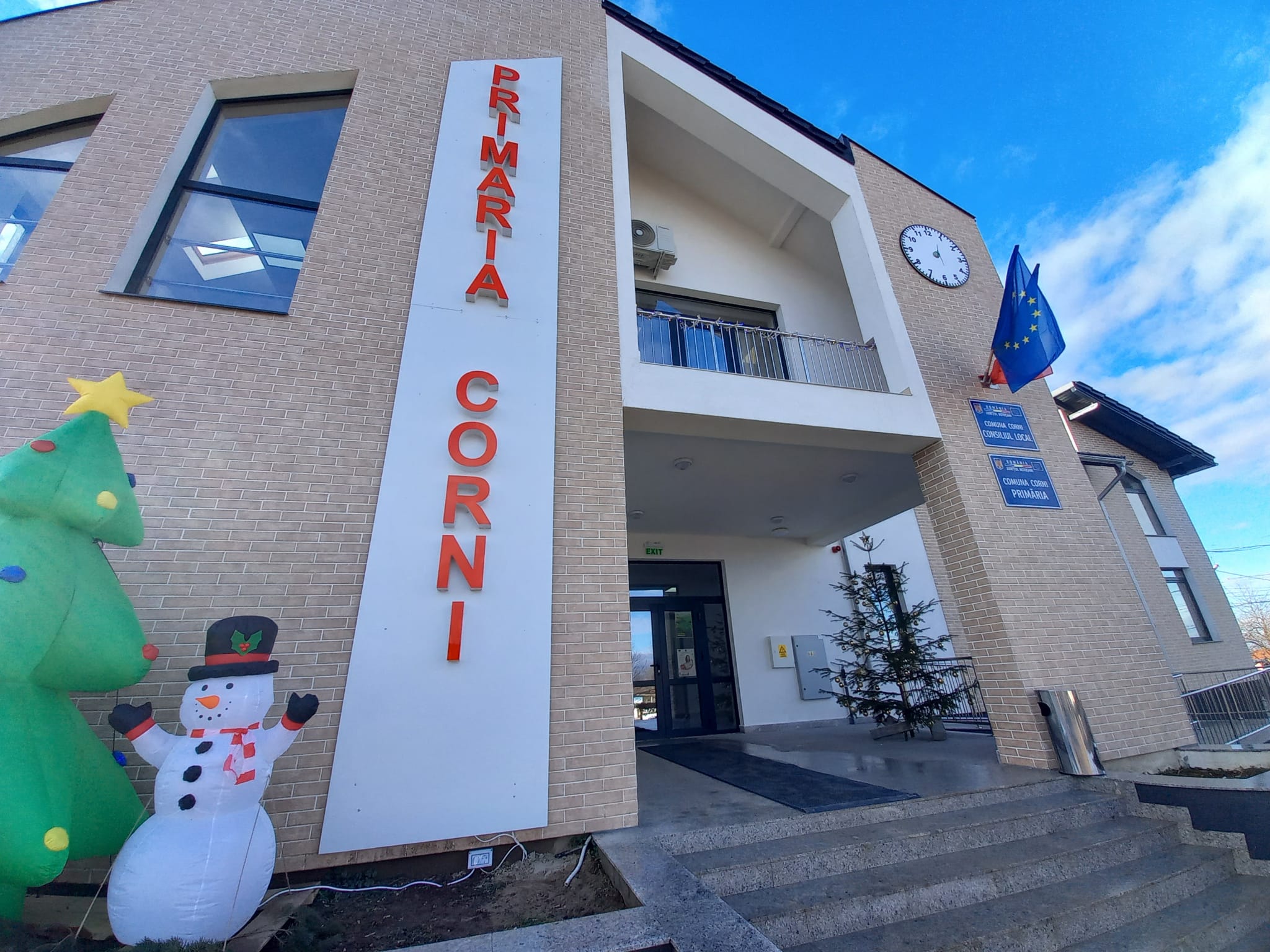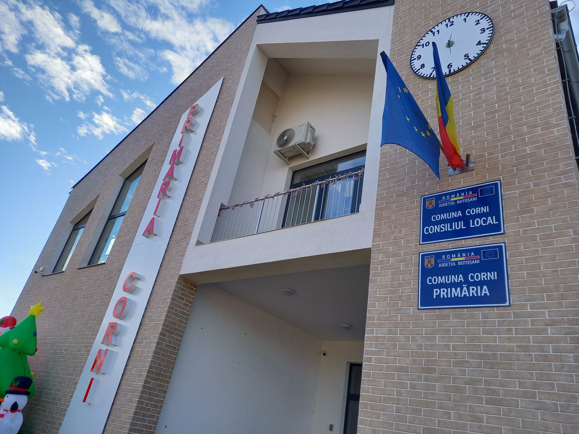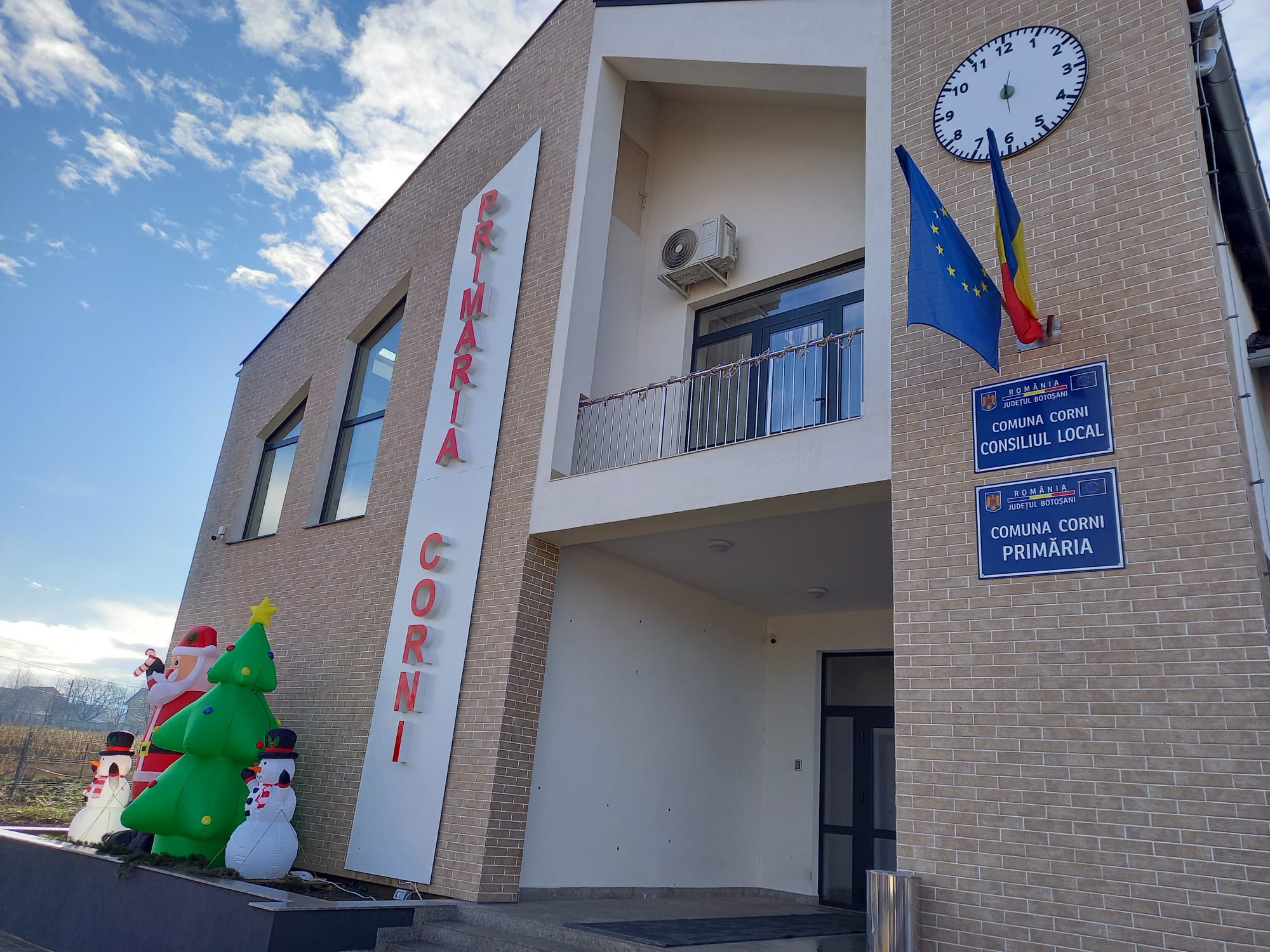 O primărie nouă a fost inaugurată, în a treia zi de Crăciun, în comuna Corni din județul Botoșani. În comuna Corni a fost construit și dotat un sediu de primărie nou, în valoare de 4,3 milioane de lei. Lucrările au început în august, anul trecut și au fost finalizate în noiembrie anul acesta.