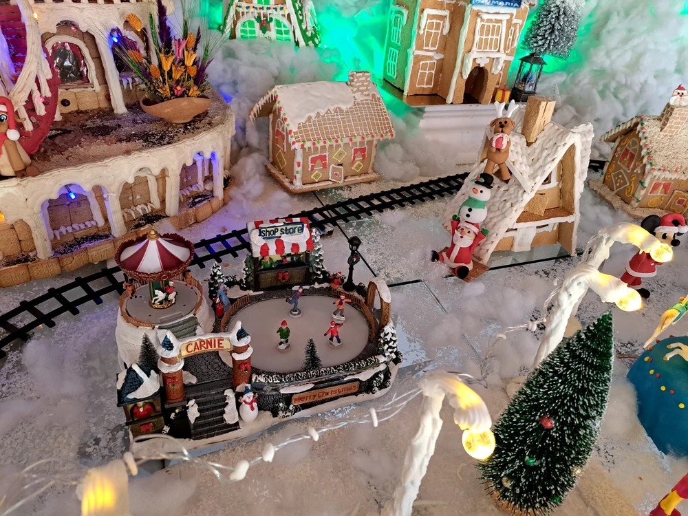 Întregul orășel a fost așezat pe o masă uriașă din cofetăria proprie, cel mai înalt castel având în jur de un metru înălțime.