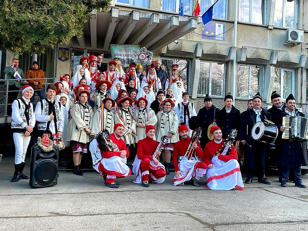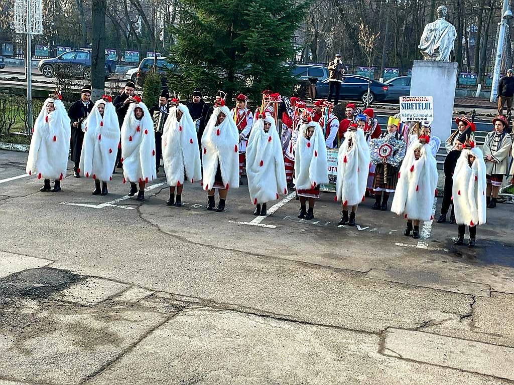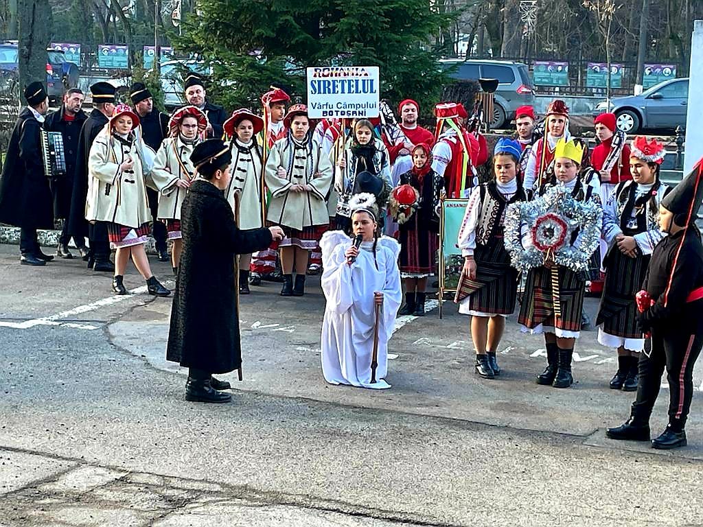 Potrivit unui comunicat transmis de IPJ Botoșani, aceștia au prezentat solia jocului și cântecului tradițional din zona Vârfu Câmpului, colinde, dansul caprelor, al mascaților și al căiuților.
