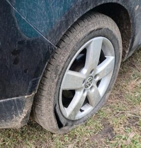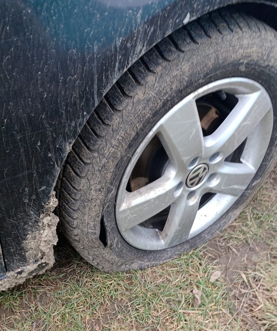 Practic i s-au tăiat cauciucurile, iar bărbatul a cerut ajutorul polițiștilor, iar oamenii legii fac cercetări pentru a-i prinde pe făptași.