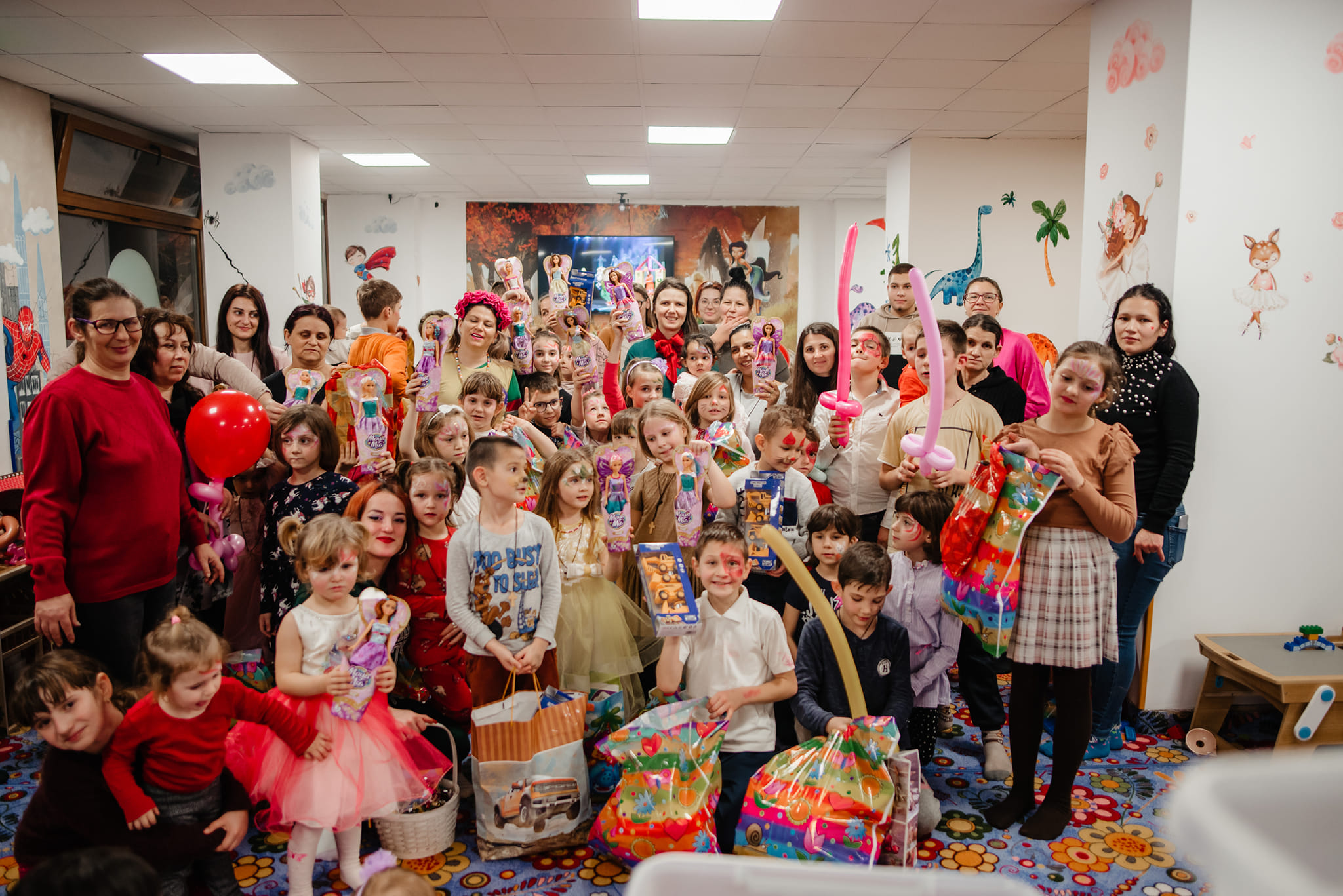 Mamele și copilașii au fost sărbătoriți cu tort, pizza de la Magic Land, și au primit jucarii, rechizite, baloane personalizate cu numele si varsta lor, carti de rugaciuni, cruciulite, iconite.