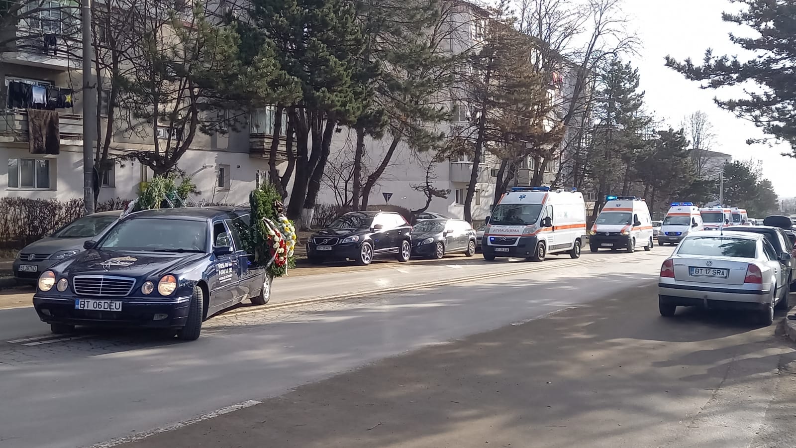 Ambulanțierul botoșănean, care a murit la 58 de ani, din cauza unei boli cumplite, a fost condus, joi, pe ultimul drum de colegii din cadrul Serviciului Județean de Ambulanță, rude și prieteni. Cortegiul funerar cu trupul neînsuflețit al lui Cornel Avasiloaie a fost însoțit de mai multe ambulanțe. De la biserica Sfânta Parascheva de pe Unirii, unde a fost oficiată slujba, și până la cimitirul în care își va găsi odihna de veci, au răsunat sirenele ambulanțelor.