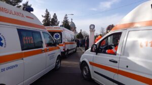 FOTO & VIDEO Ambulanțierul botoșănean, mort la 58 de ani, a fost condus pe ultimul drum. Mai multe ambulanțe au însoțit cortegiul funerar