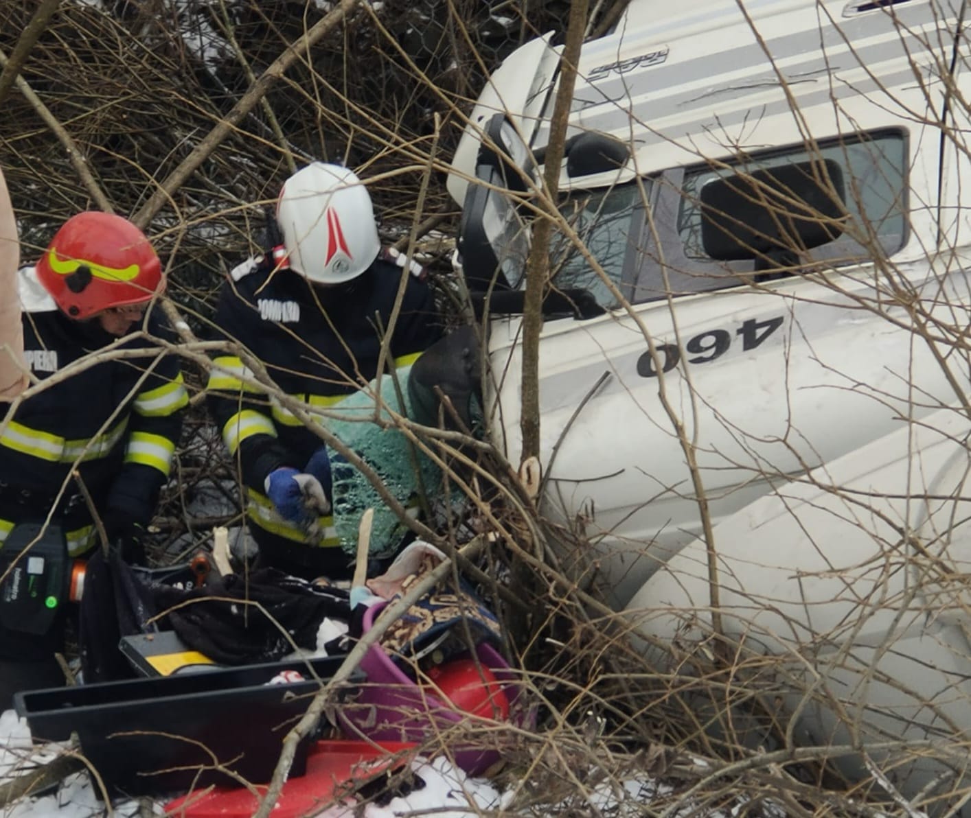 Datorita interventiei sustinute a echipajului de descarcerare, victima a fost extrasa la timp si predata cadrelor medicale aflate la fata locului.
