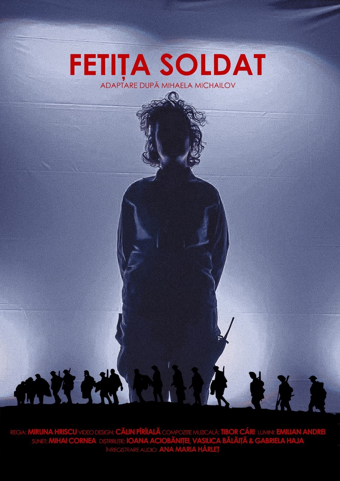 Regia artistică, decor şi costume sunt semnate de Miruna Hriscu, compoziţia muzicală îi aparţine lui Tibor Cári, video desing: Călin Pîrîială, iar protagoniştii spectacolului sunt: Ioana Aciobăniței (Fetiţa soldat) şi Vasilica Bălăiță (Soldata)