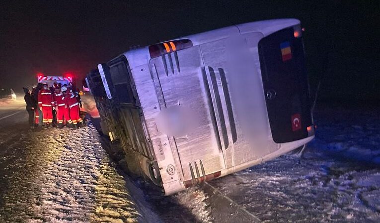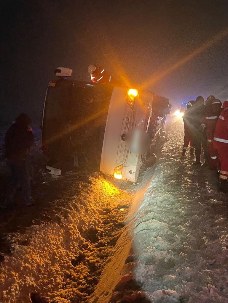FOTO Șase persoane implicate în accidentul de pe drumul Botoșani- Suceava. Un autocar s-a răsturnat