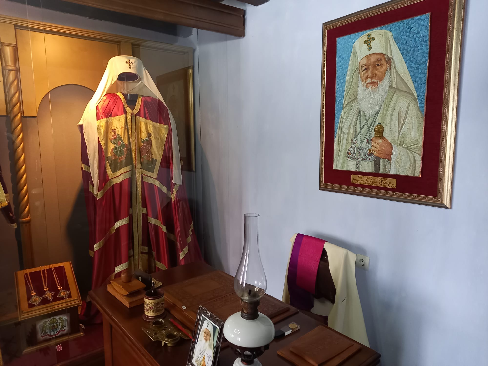 În cadrul aşezământului sunt expuse mitra, toiagul arhieresc şi veşmintele fostului patriarh, dar şi cărţile scrise de acesta, obiecte ce au aparţinut familiei sale, o bibliotecă cu cele 17 volume de predici, precum şi numeroase medalii, plachete şi distincţii dobândite de patriarh în timpul vieţii.