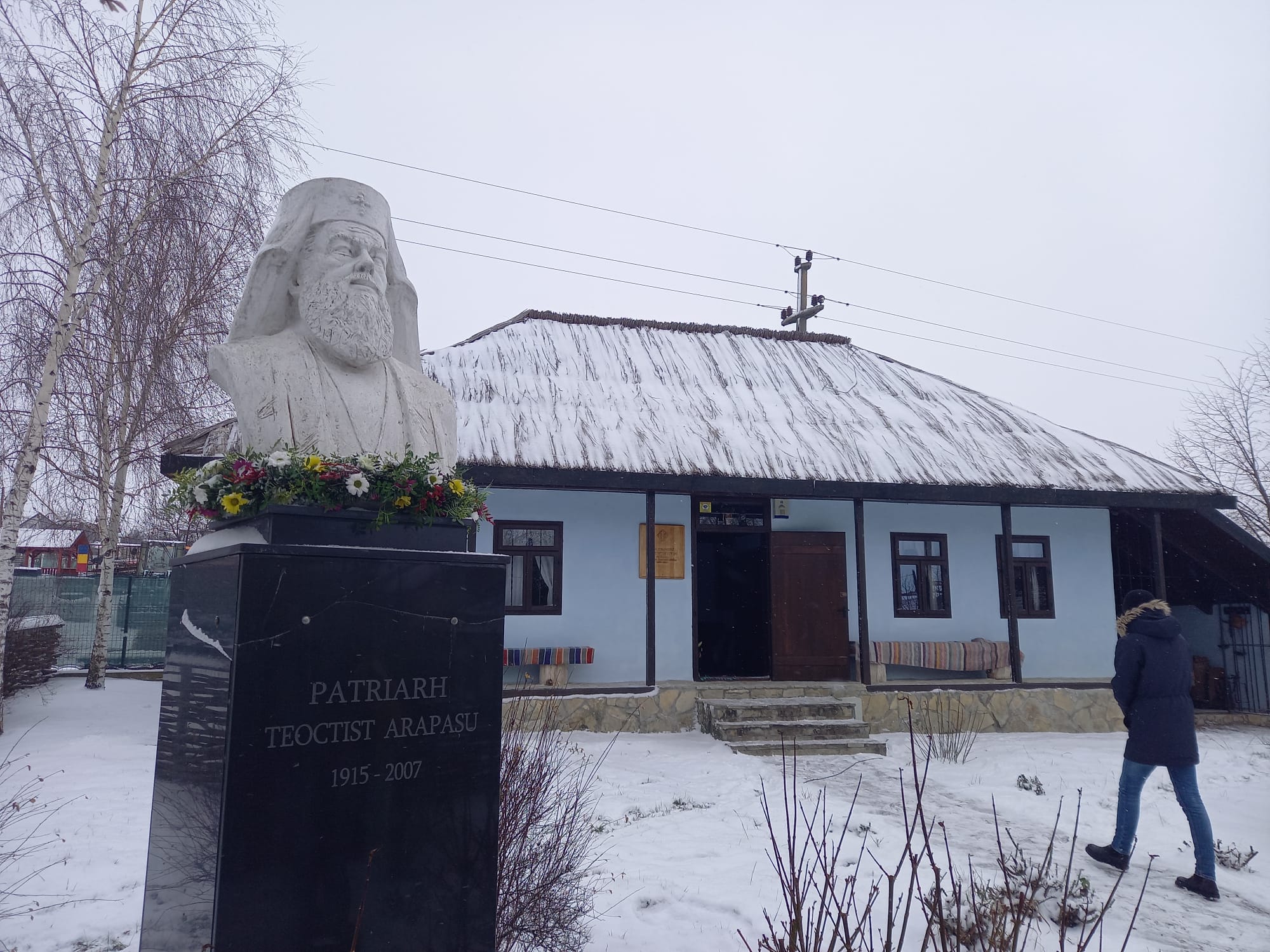 Casa Memorială Teoctist Patriarhul a fost realizată după o fotografie din arhiva personală a familiei Arăpaşu. Construcţia, în stilul specific arhitecturii moldoveneşti, este formată din tindă şi două odăi, prispă şi acoperiş din stuf, şopron pentru unelte agricole şi coşar împletit din nuiele în ogradă.