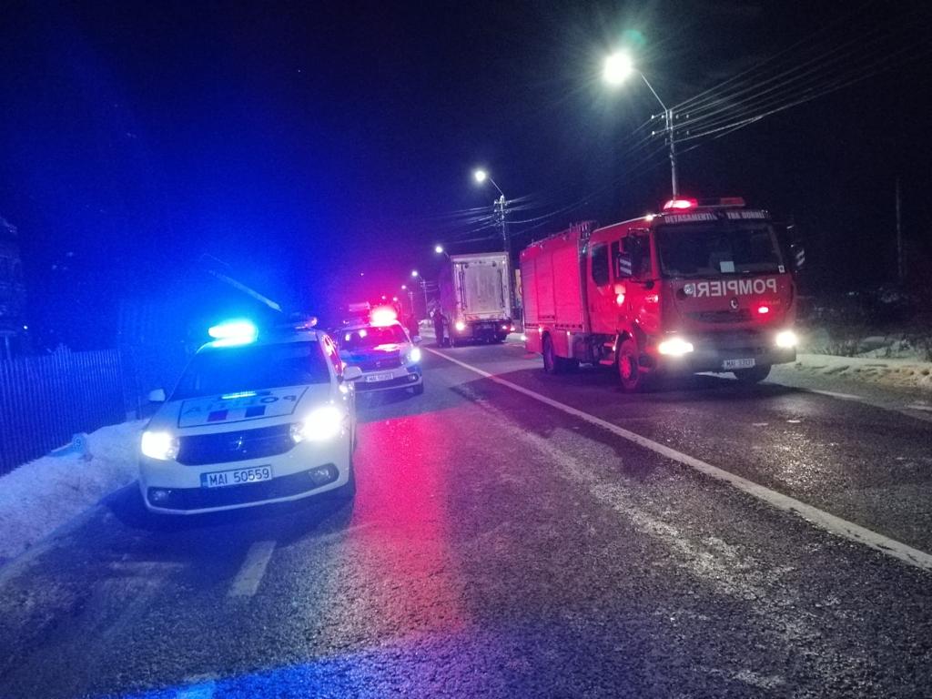 Un accident a avut loc miercuri seară, în localitatea Argestru din Vatra Dornei. Două camioane s-au ciocnit. Au intervenit pompierii militari ai Detașamentului Vatra Dornei cu o autospecială de stingere cu apă și spumă dotată cu modul pentru descarcerare cu sprijinul unui echipaj al Serviciului de Ambulanță Județean Suceava.