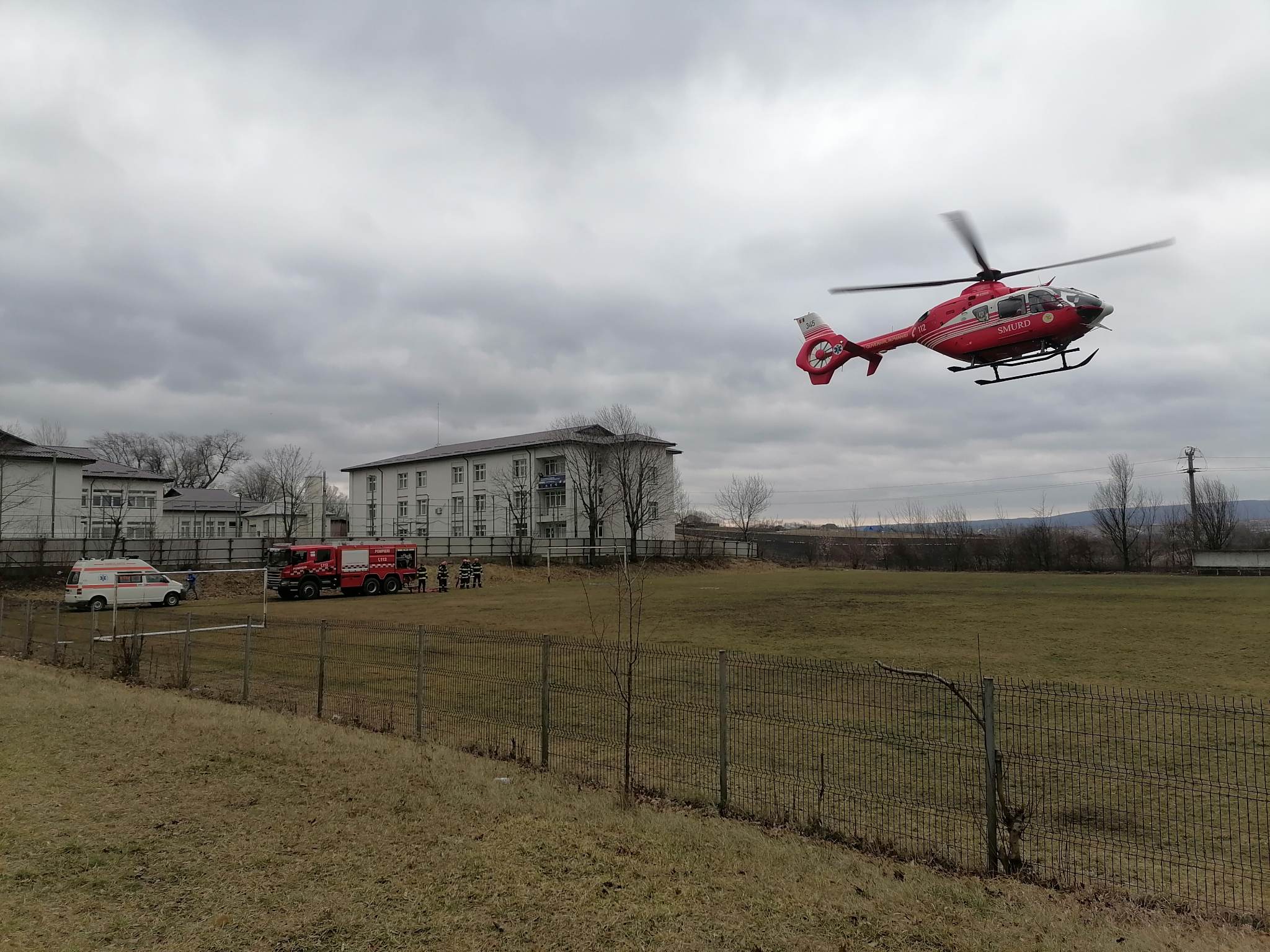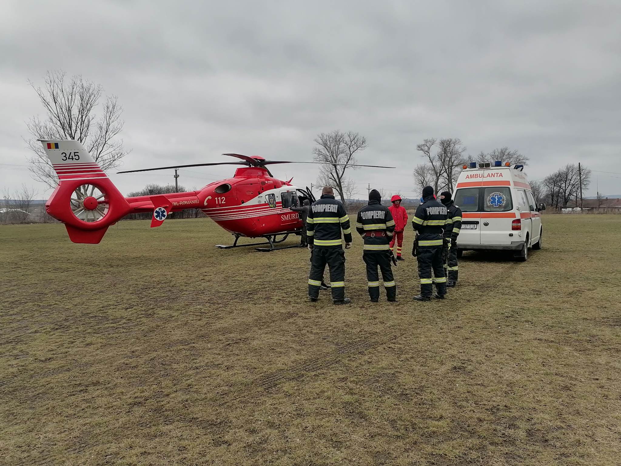 Pompierii dorohoieni au intervenit pentru asigurarea măsurilor la aterizarea și decolarea elicopterului.