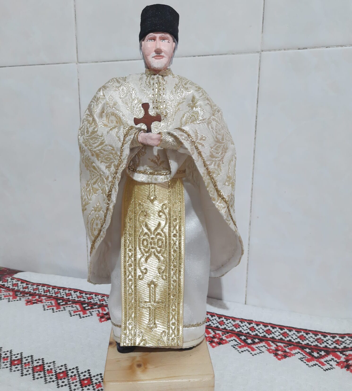 Aceștia au realizat un preot în miniatură, cu veșmintele asemănătoare cu ale părintelui Candrea.