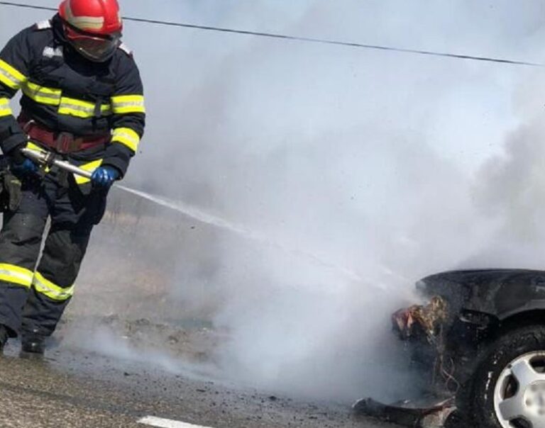 Mașina unui botoșănean a luat foc în mers. Au fost chemați imediat pompierii