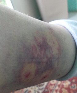 „Are 11 câini și ies din curtea. Nici nu știu cum să procedez. Nu am scăpat ieftin. Mă doare piciorul de mor. Tot mi-a promis că îi dă, dar degeaba”, spune femeia.