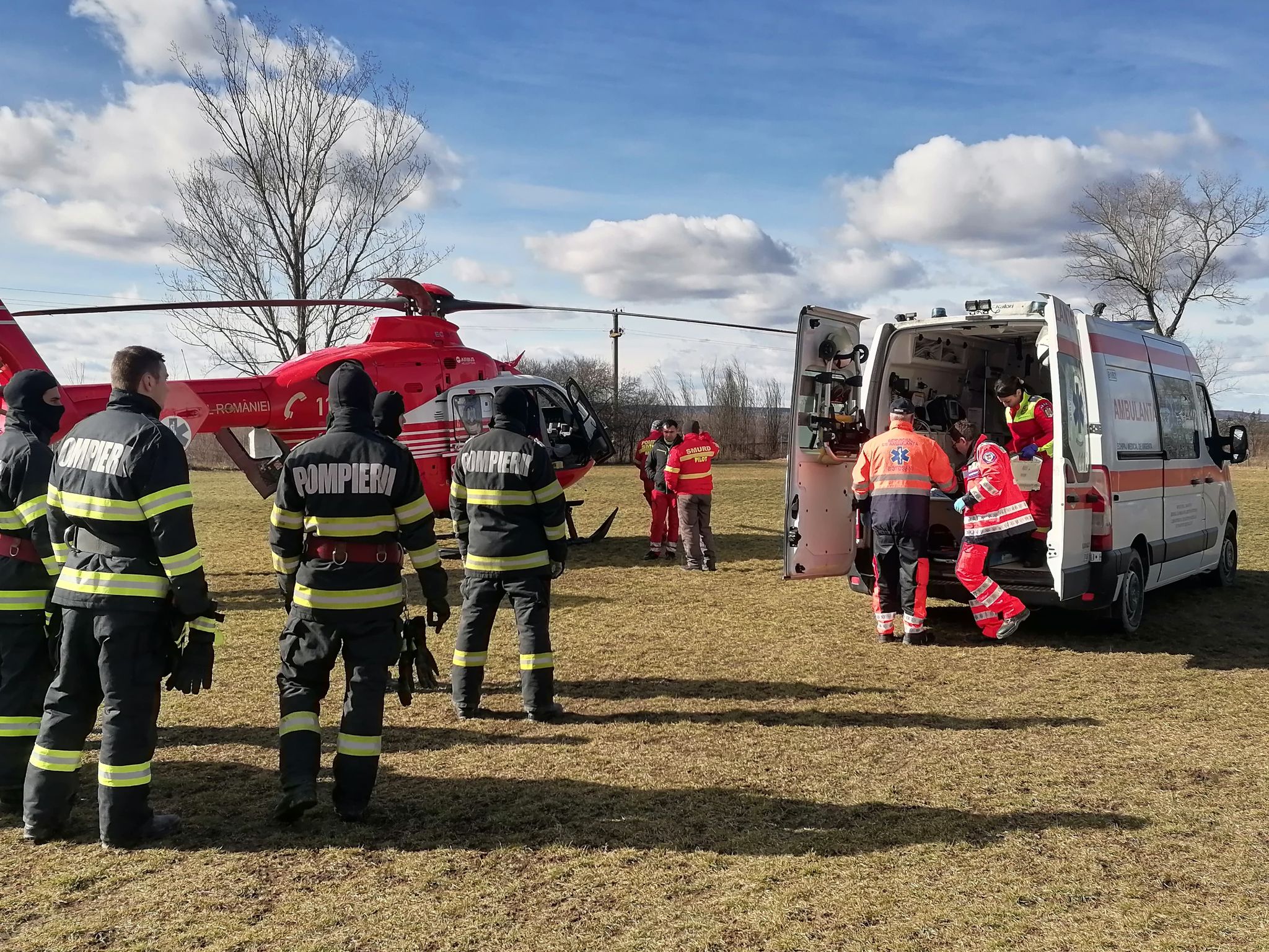 Pompierii au intervenit pentru asigurarea măsurile la aterizarea și decolarea elicopterului.