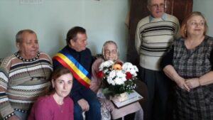 Bordianu Agapia, văduvă de veteran de război nascută pe 21 februarie 1923 a fost sarbatorita de familie, prieteni si autorități. A crescut într-o familie cu 4 copii în satul Climauți județul Suceava unde de mic copil a trecut prin vremuri grele îndurând ororile din perioada celui de al doilea razboi mondial.