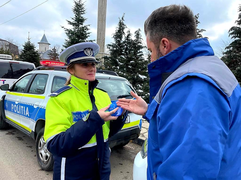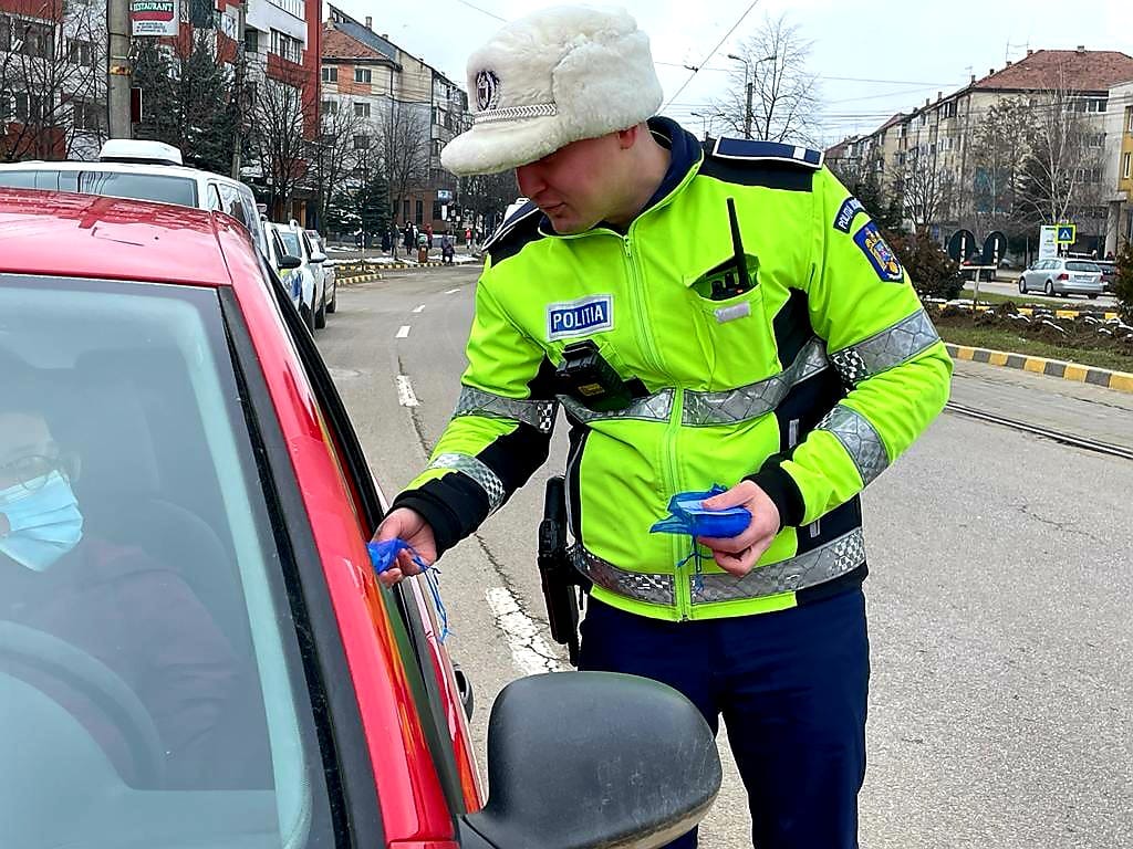 Actiune inedită a polițiștilor rutieri împreună cu reprezentanții Registrului Auto Român. Polițiștii rutieri împreună cu reprezentanți ai Registrului Auto Român au oferit astazi, 1 martie, mărțișoare doamnelor și domnișoarelor întâlnite în trafic.
