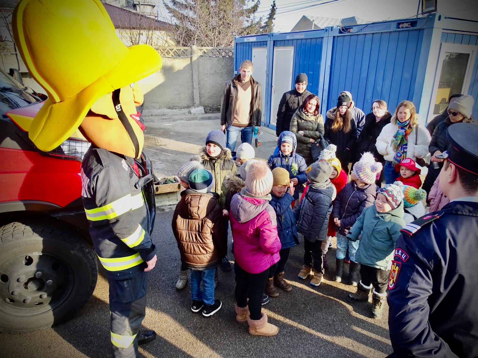 Astfel, ei au avut ocazia să vadă îndeaproape autospecialele folosite în misiunile operative și au aflat informații utile cu privire la modul în care trebuie să se comporte pentru a preveni situațiile de urgență. Autospeciala pentru intervenție și salvare de la înălțime a fost unul dintre punctele de atracție, copiii demonstrând că nu au frică de înălțime. Aceștia au îmbrăcat haina de pompier, au urcat în autospecialele de intervenţie, iar cei mai îndrăzneți au testat presiunea furtunelor ca și când ar fi stins un incendiu.