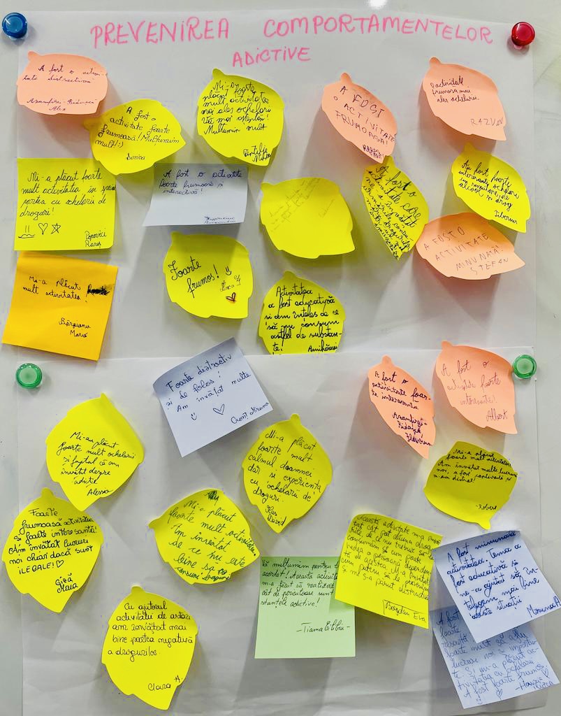 Liceenii participanți la activități au dezbătut împreună cu specialiștii antidrog cauzele consumului de substanțe psihoactive în rândul tinerilor și cum pot face față presiunii anturajului atunci când sunt puși în fața unei decizii. S-au discutat aspecte referitoare la dependenţă, toleranță, modalitatea în care se schimbă comportamentul unei persoane consumatoare, efectele fiziologice şi medicale ce decurg dintr-un consum pe termen lung și au fost clarificate aspectele juridice ce țin de regimul drogurilor.