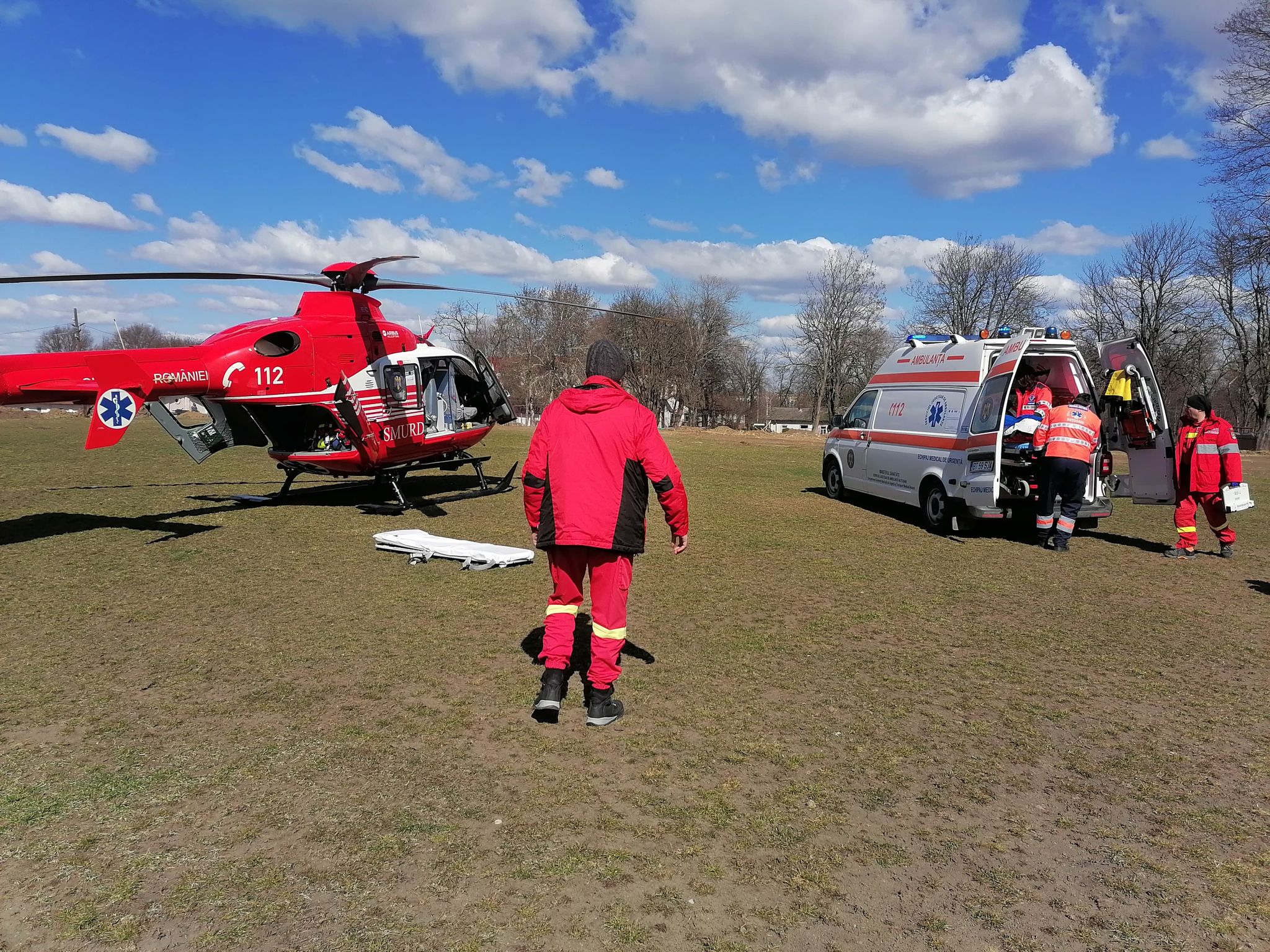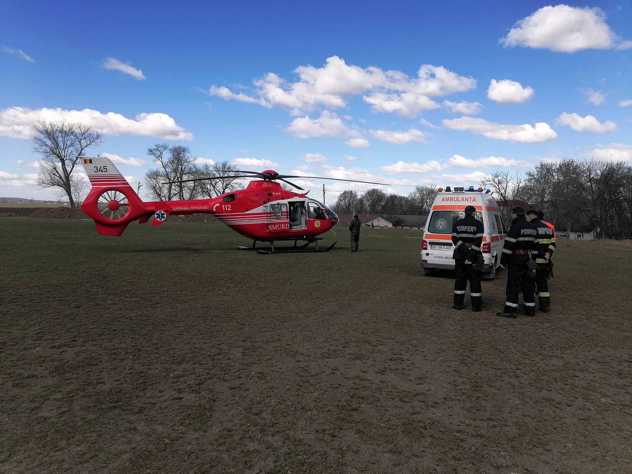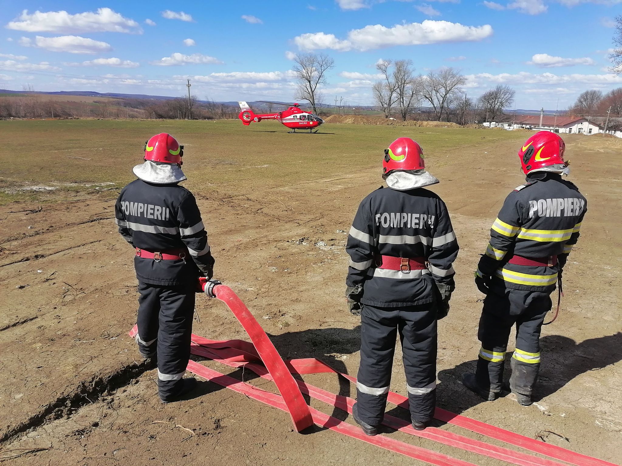 Pompierii dorohoieni au intervenit pentru asigurarea măsurilor pentru aterizarea și decolarea elicopterului SMURD.