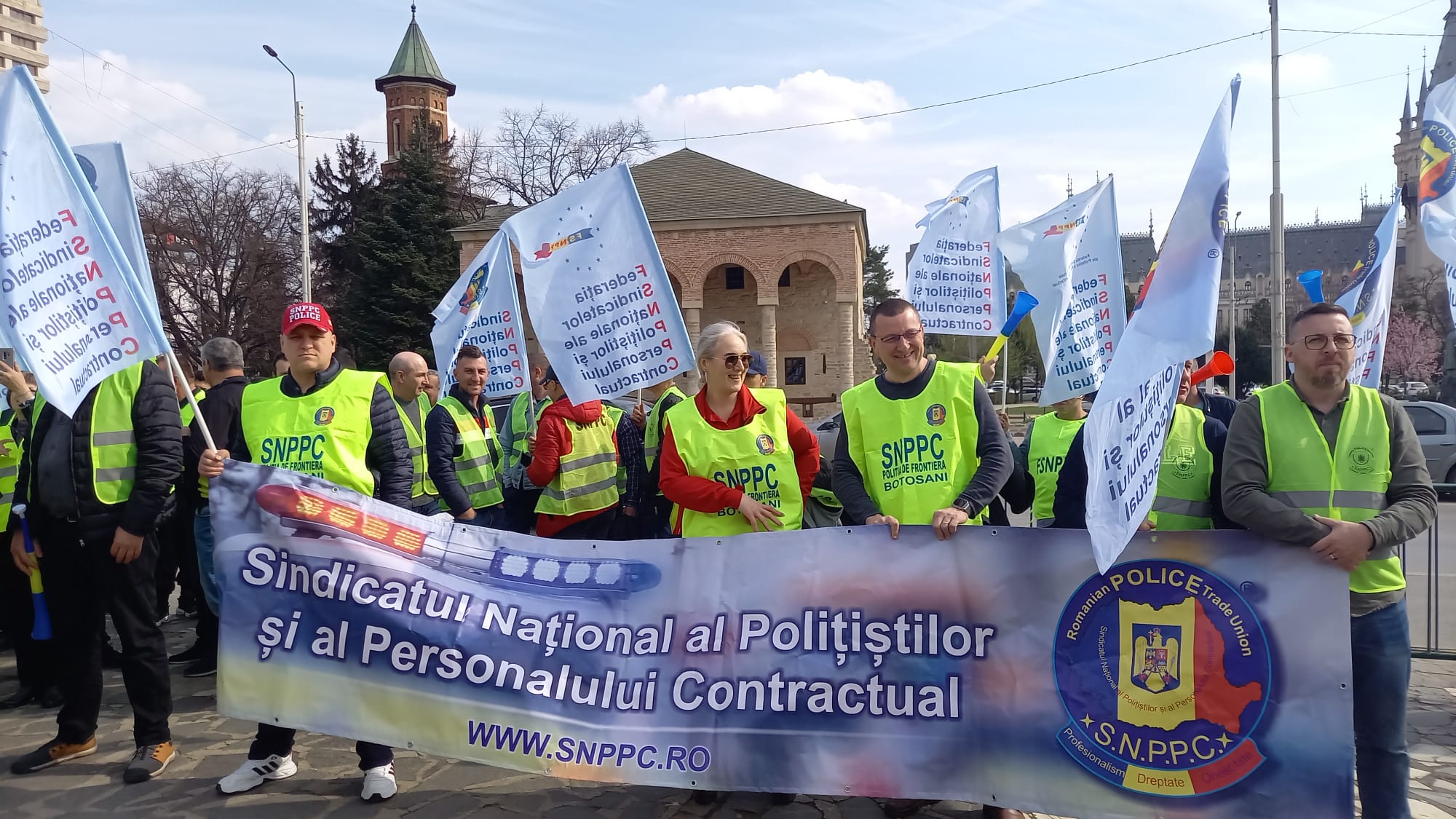 FOTO Polițiștii botoșăneni au protestat la Iași. „A fi polițist nu este chiar așa ușor și când ajungi la finalul carierei să fii dezamăgit de acest sistem nu este chiar plăcut”