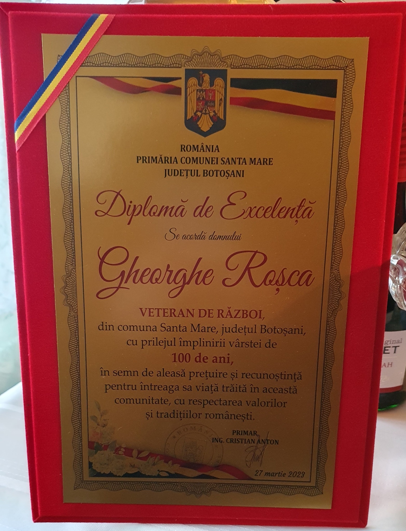 „Am ascultat povești incredibile din timpul vieții, am primit povețe și ne-am bucurat împreună alături de domnul Roșca Gheorghe, la împlinirea vârstei de 100 de ani. Și-a trăit viața cu demnitate, a fost martor și participant la multe evenimente istorice care i-a schimbat complet modul de viață. Cu toate acestea a rămas un om puternic care știe să se bucure de viață și să se raporteze filozofic la toate vicisitudinile destinului, găsind în ele o mulțime de plusuri și motive de bucurie”, a mărturisit primarul comunei, Cristian Anton.