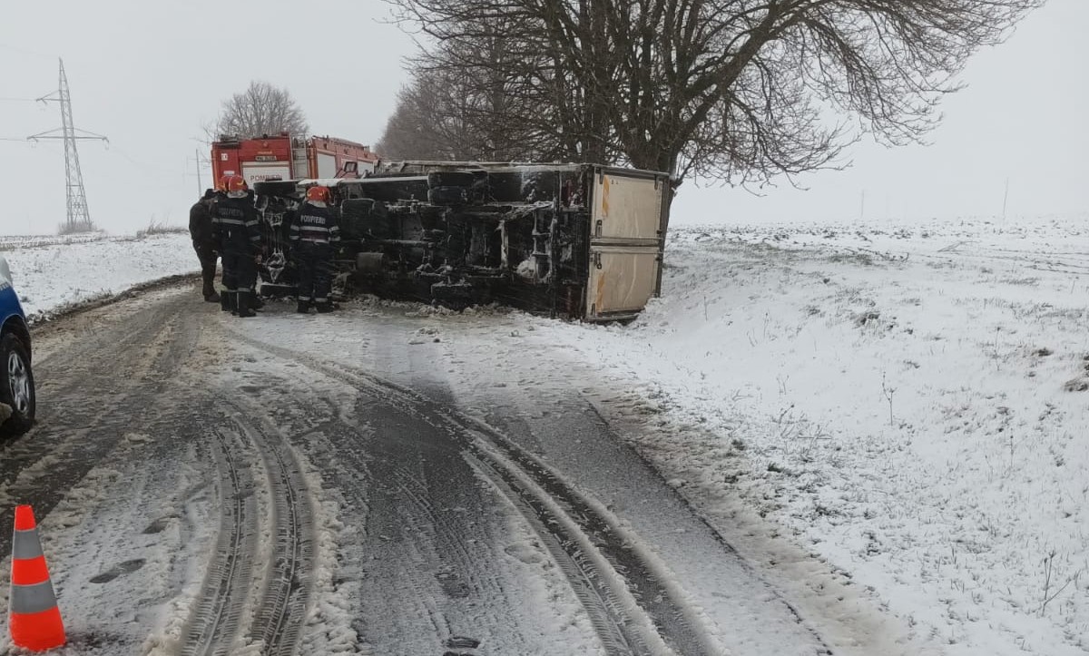 Un accident rutier a avut loc pe DJ 298, George Enescu – Dumeni. O autoutilitară, în care se aflau două persoane, s-a răsturnat și a blocat, parțial, circulația rutieră. Din fericire, acestea nu au fost rănite. Pompierii din cadrul Detașamentului Dorohoi au fost solicitați să intervină pentru că exista pericolul de izbucnire a unui incendiu.