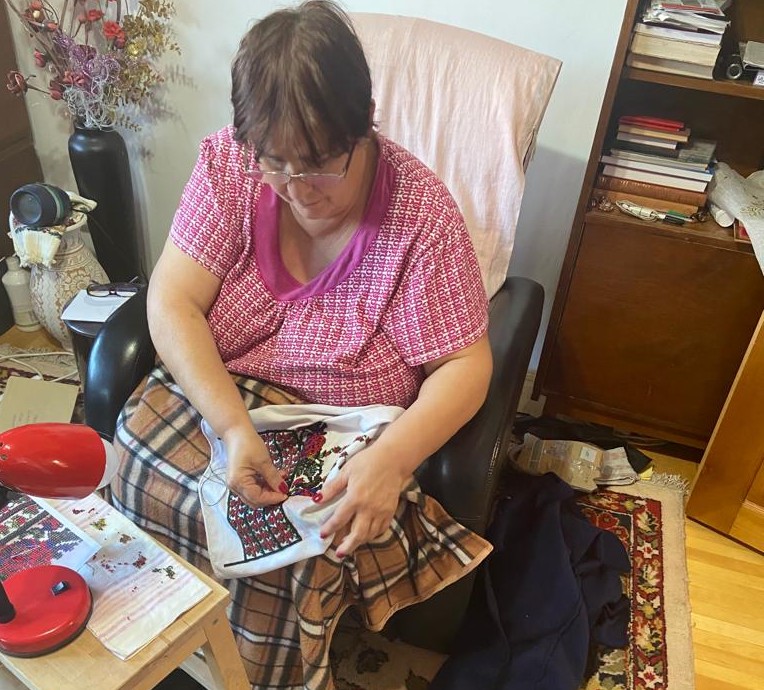 „Cu sfaturile ei, am fost foarte bucuroasă să mă apuc cu drag de cusut. Și după amiaza, după ce îmi terminam treburile prin casă, 2-3 ore mă relaxam și cu drag coseam la ie. Încet, încet, am reușit să o termin și sunt foarte bucuroasă și mulțumită”, a mai spus preoteasa.