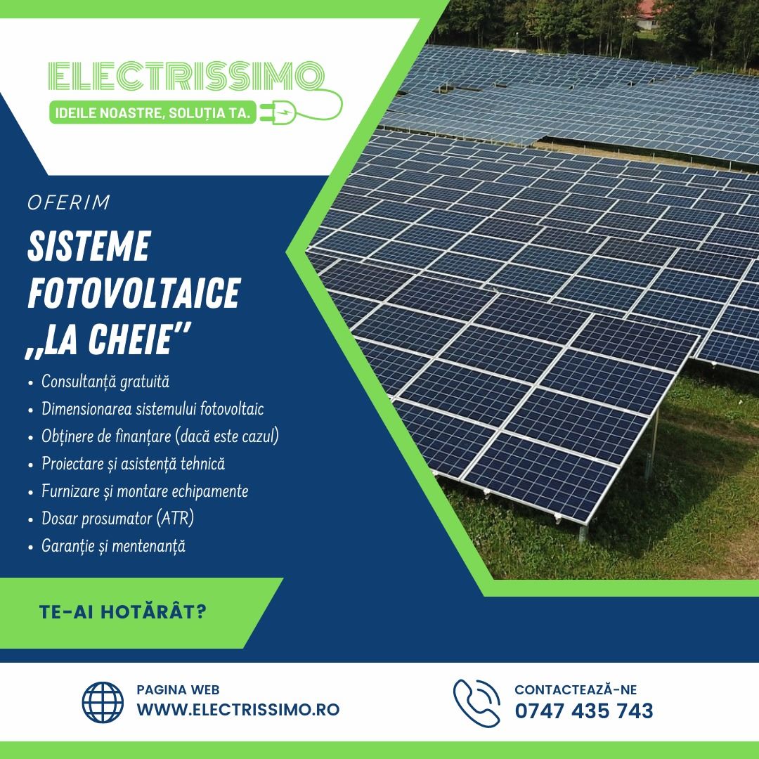 - Proiectare și execuție sisteme fotovoltaice (https://electrissimo.ro/sisteme-fotovoltaice-la-cheie/);