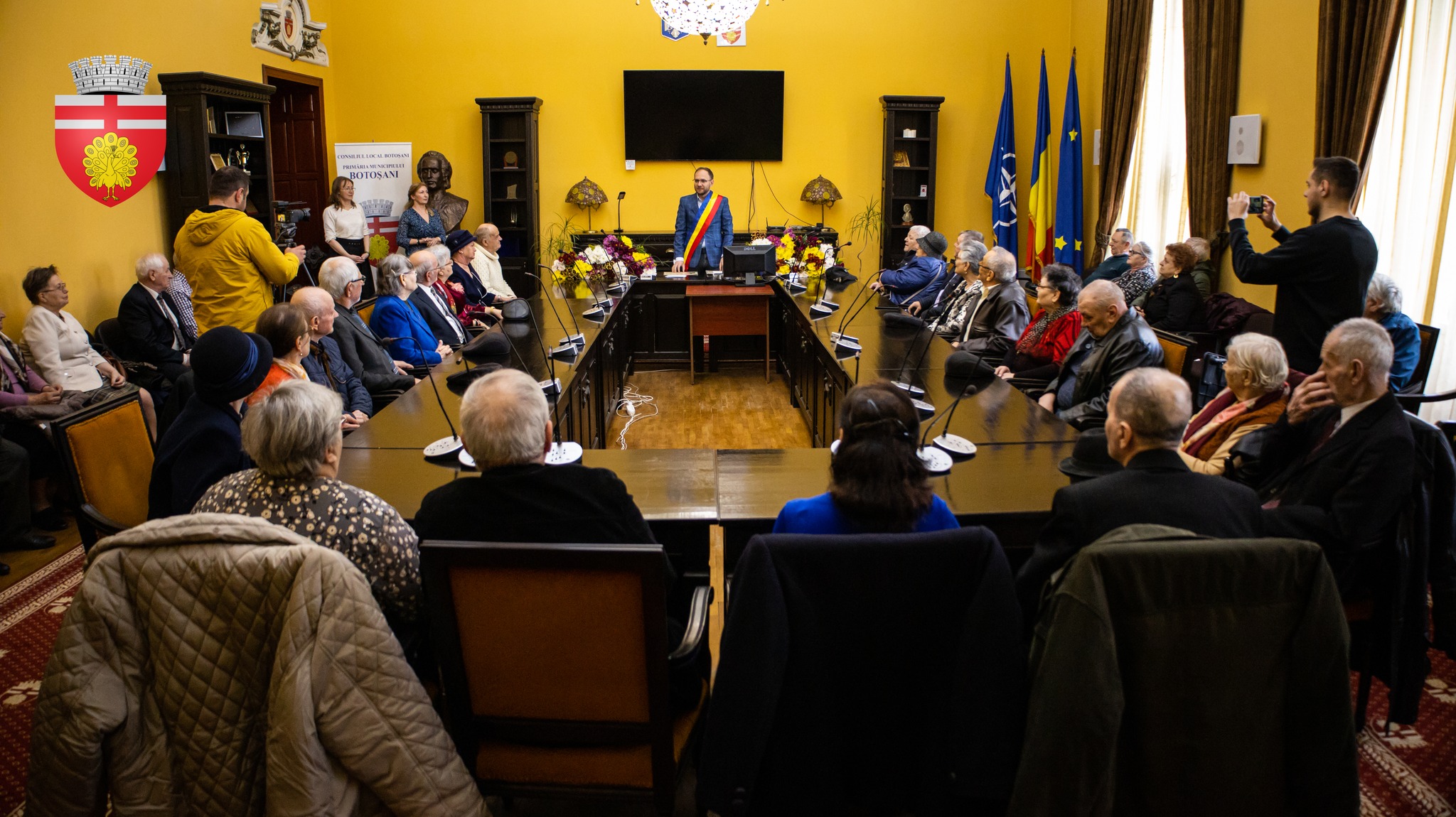 ”Felicitări pentru ce ați făcut pentru orașul nostru, pentru faptul că ați fost împreună 50 sau chiar 60 de ani. Sunteți aici sănătoși, cu copii, cu nepoți sau asta cu sănătatea așa și așa, nu? Dacă sunteți aici e bine, e cel mai important chiar. Suntem aici să ne bucurăm împreună de acest moment care este fericit deopotrivă pentru nou și pentru dumneavoastră”, a declarat Cosmin Andrei.