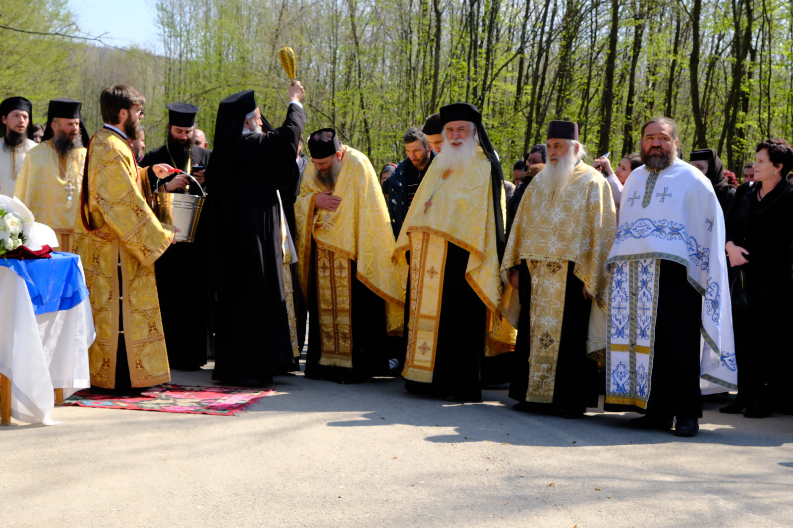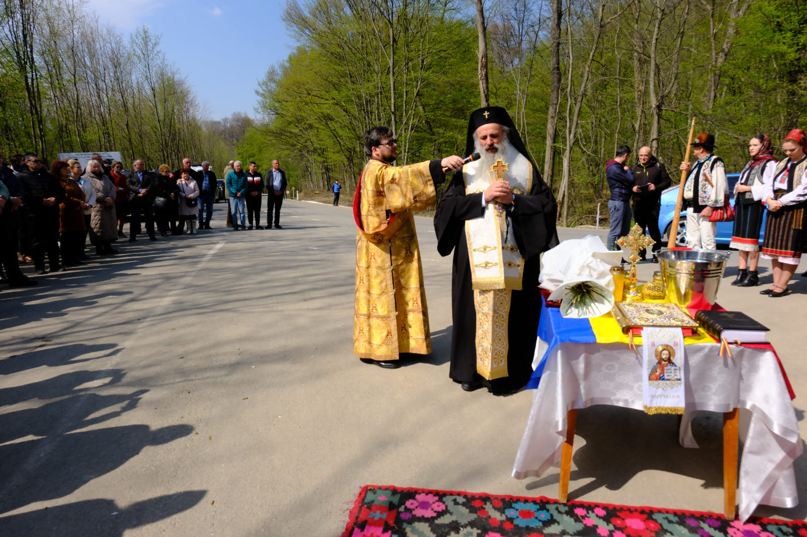 Slujba de sfințire a avut loc la intersecția Drumului Mănăstirilor cu intrarea spre Mănăstirea Sihăstria Voronei.